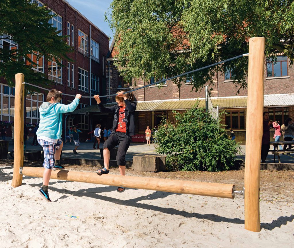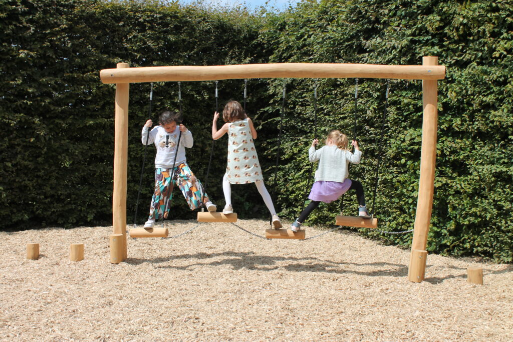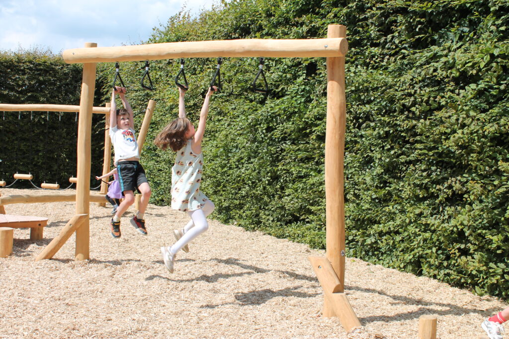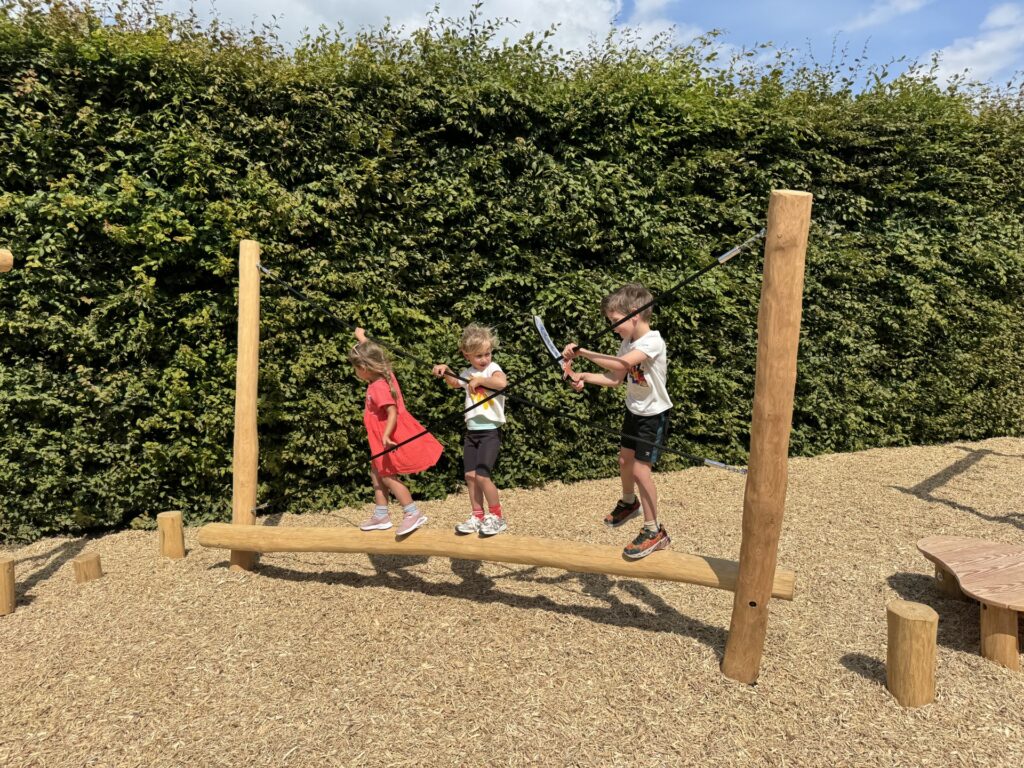 Eco-play heeft het assortiment uitgebreid met een touwenparcours van duurzaam robinia hout. Diverse speeltoestellen onderling verbonden met stappaaltjes.