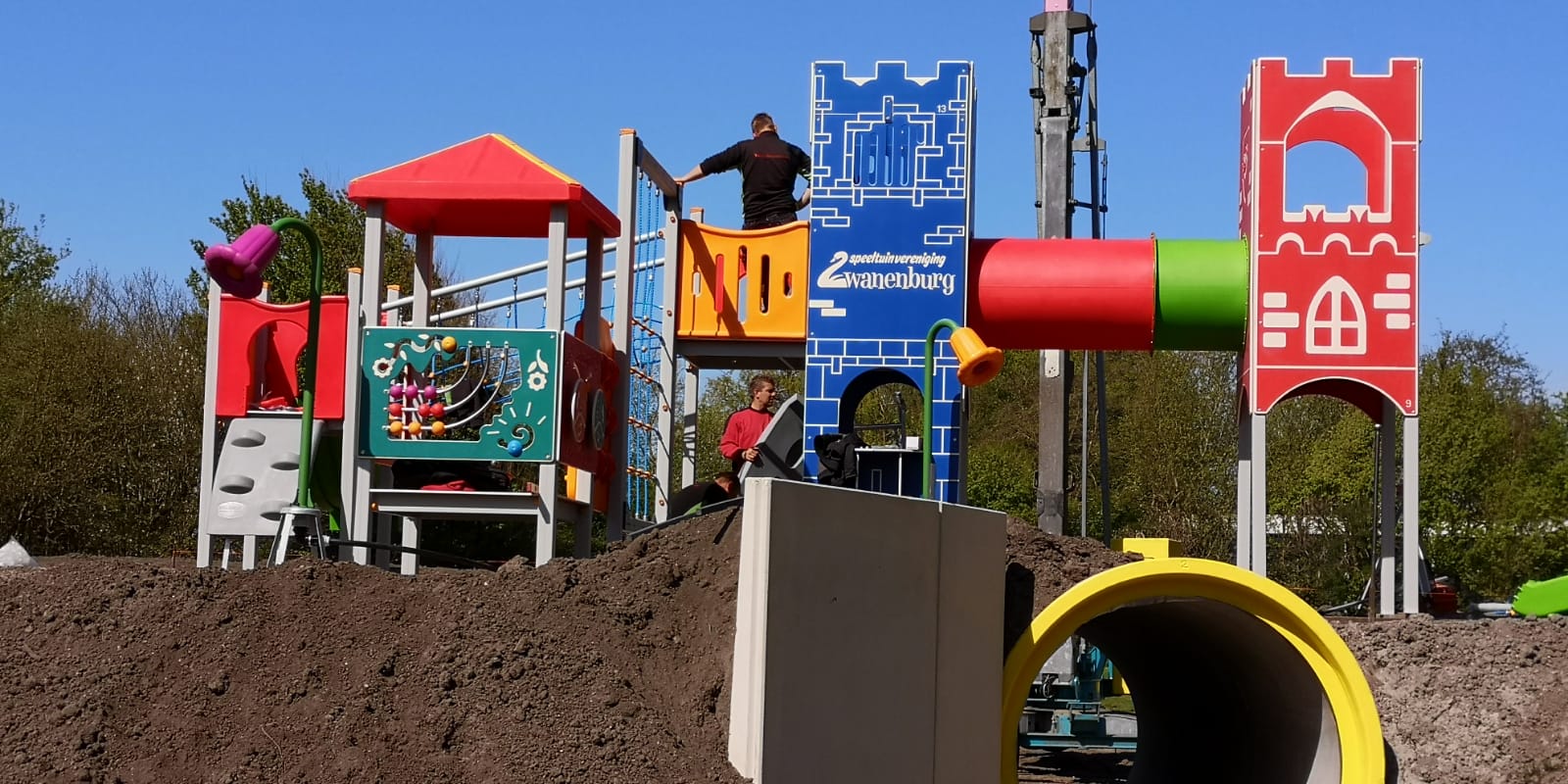Het is een kleurrijk geheel geworden van speeltorens die aan elkaar verbonden zijn middels bruggen en voorzien van meerdere glijbanen