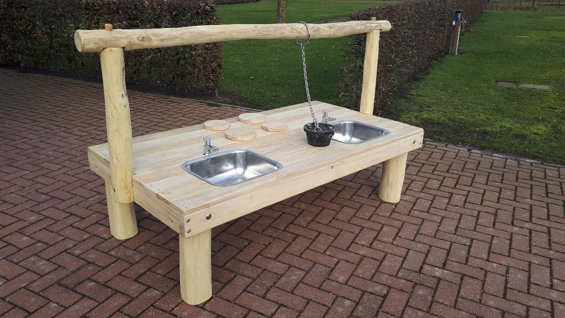 Het robinia assortiment voorziet steeds meer in een behoefte aan vergroening van schoolpleinen en buitenruimtes. Er komen steeds meer speeltoestellen of andere producten van robinia bij. Sinds een tijdje is het assortiment uitgebreid met speelkeukens in een enkele- en een dubbele variant. Zeer geschikt ook voor kinderdagverblijven en instellingen