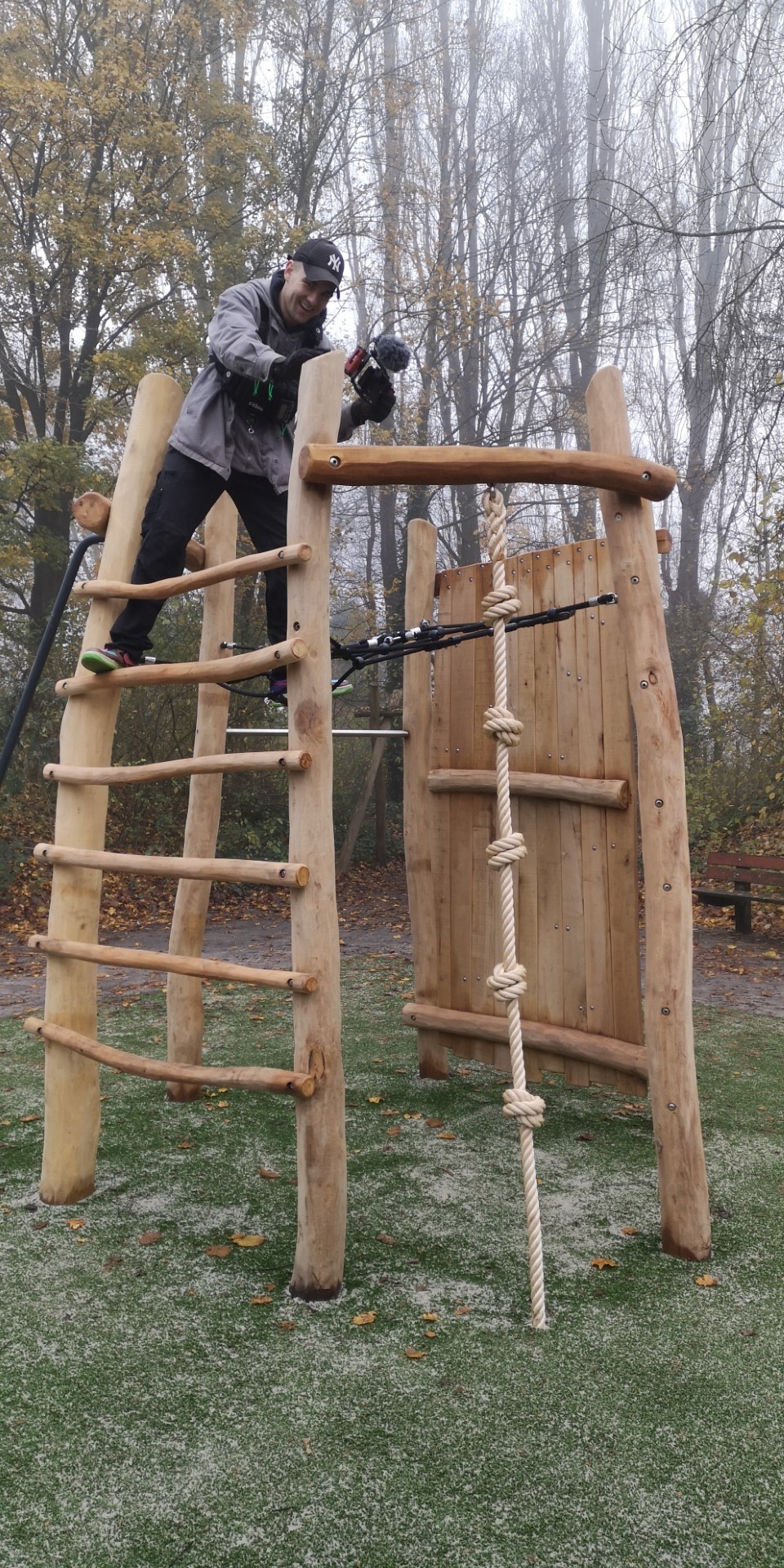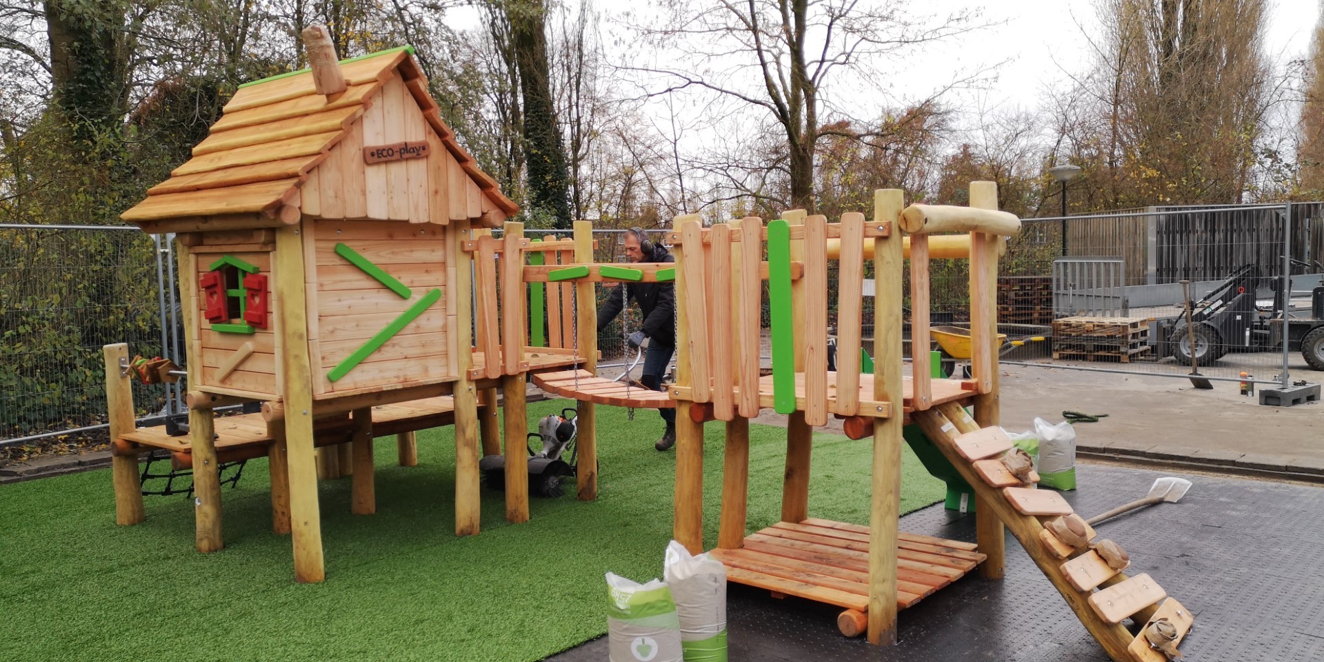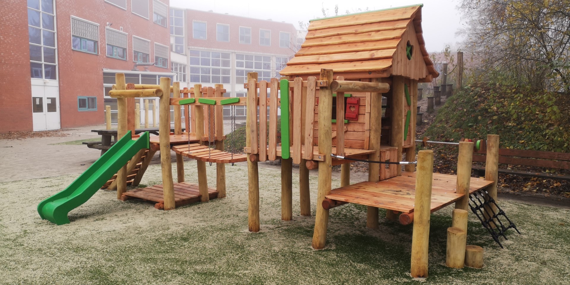 We hebben daar bestaande speeltoestellen en ondergronden verwijderd en nieuwe robinia speeltoestellen geplaatst en nieuw valdempend kunstgras aangebracht.