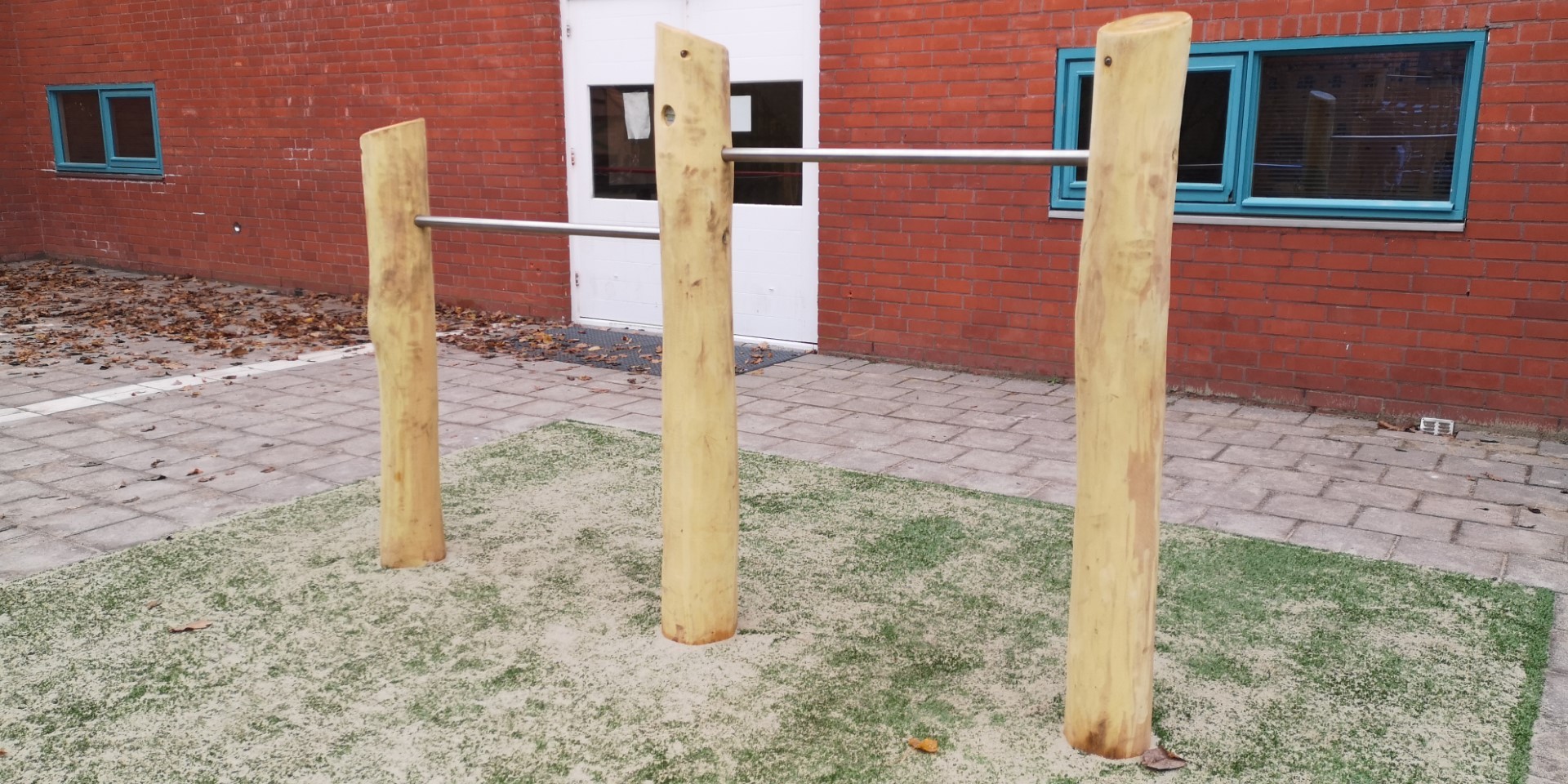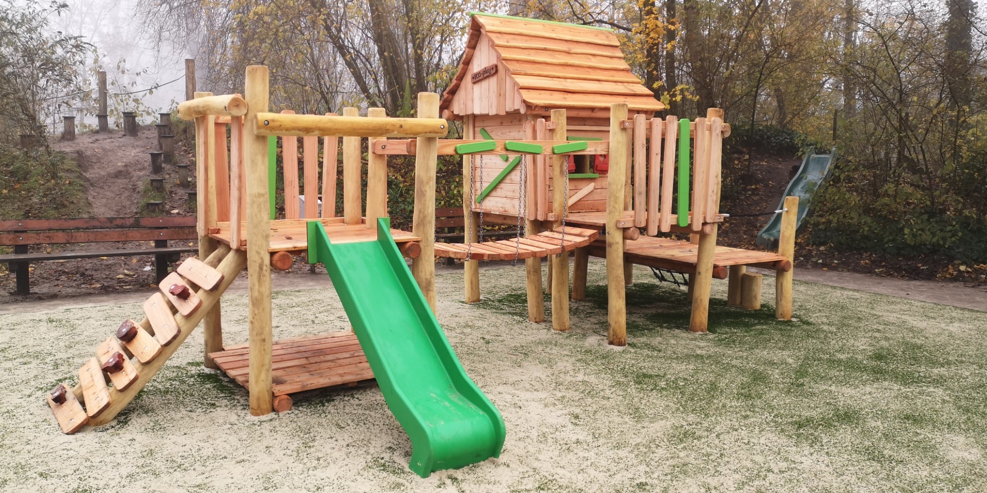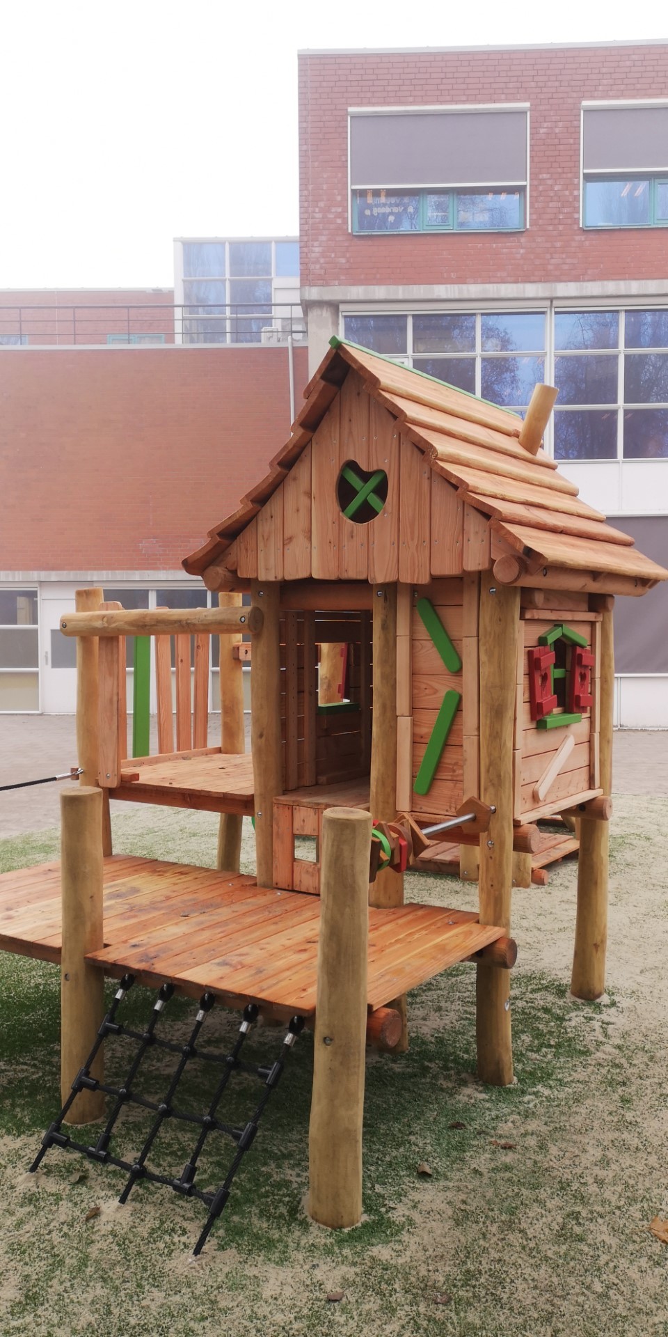 We hebben daar bestaande speeltoestellen en ondergronden verwijderd en nieuwe robinia speeltoestellen geplaatst en nieuw valdempend kunstgras aangebracht.
