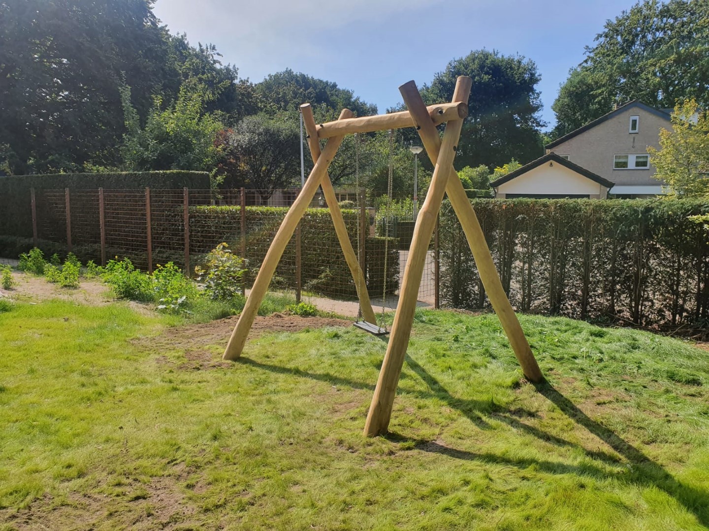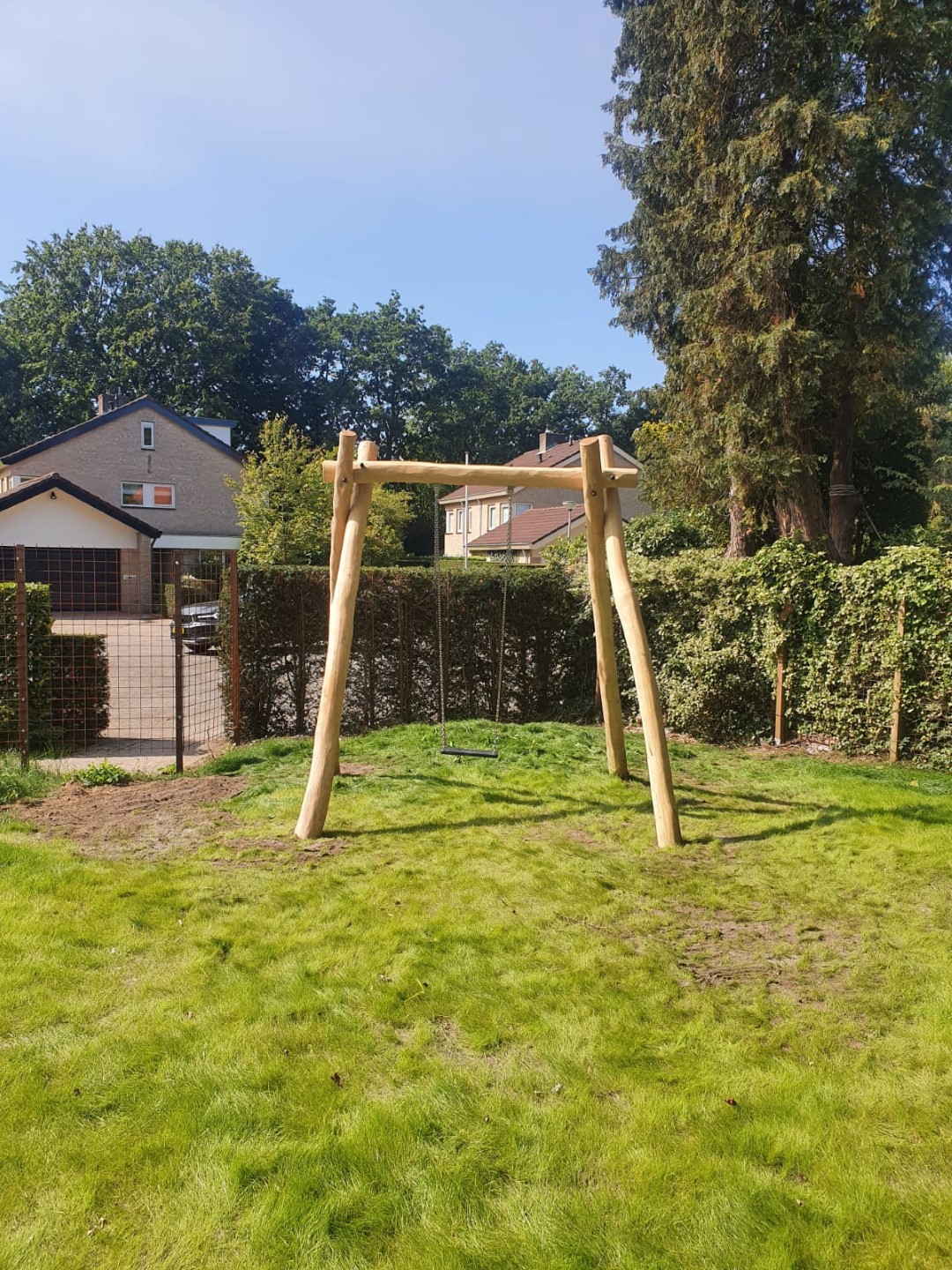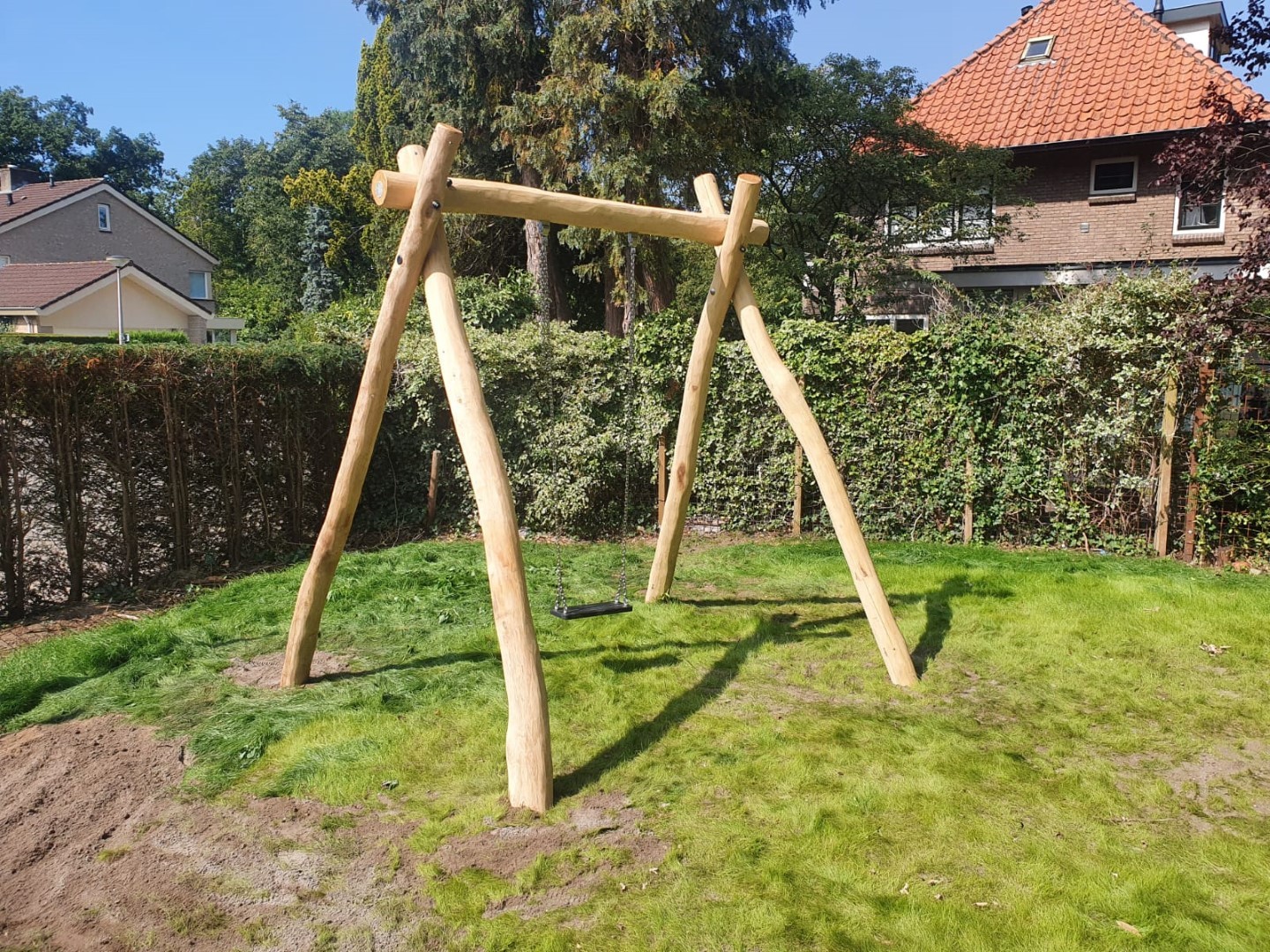Bij de nieuwbouw van deze instelling is gekozen voor een robinia schommel uit het Robinia basic assortiment. Enkele schommel met 1 rubberzitting, deze mag op gras geplaatst worden