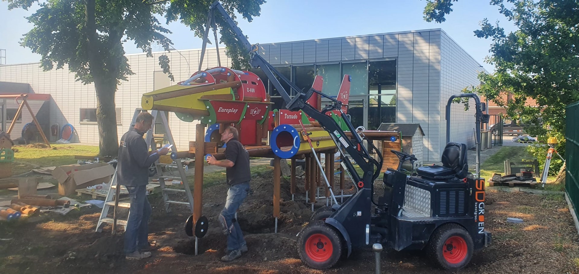Een leuke klus hebben we in Beveren Waas B. gehad, het leveren en monteren van meerdere speeltoestellen waaronder de Europlay Tornado en 2 schommels. De kinderen zijn er super blij mee.