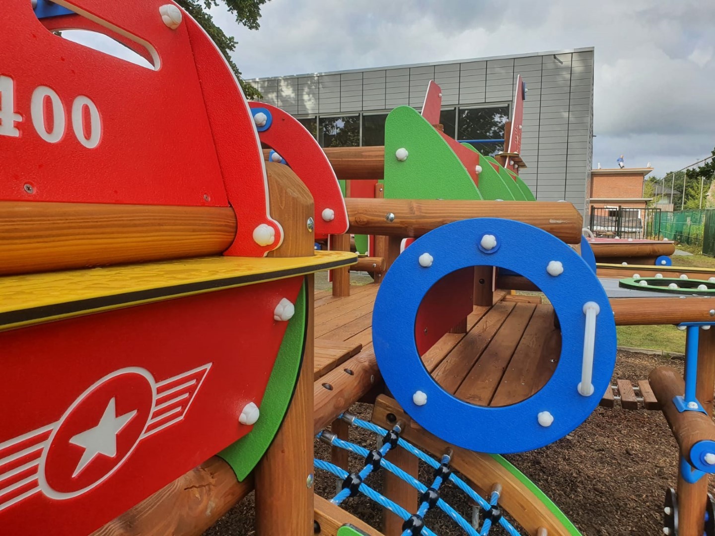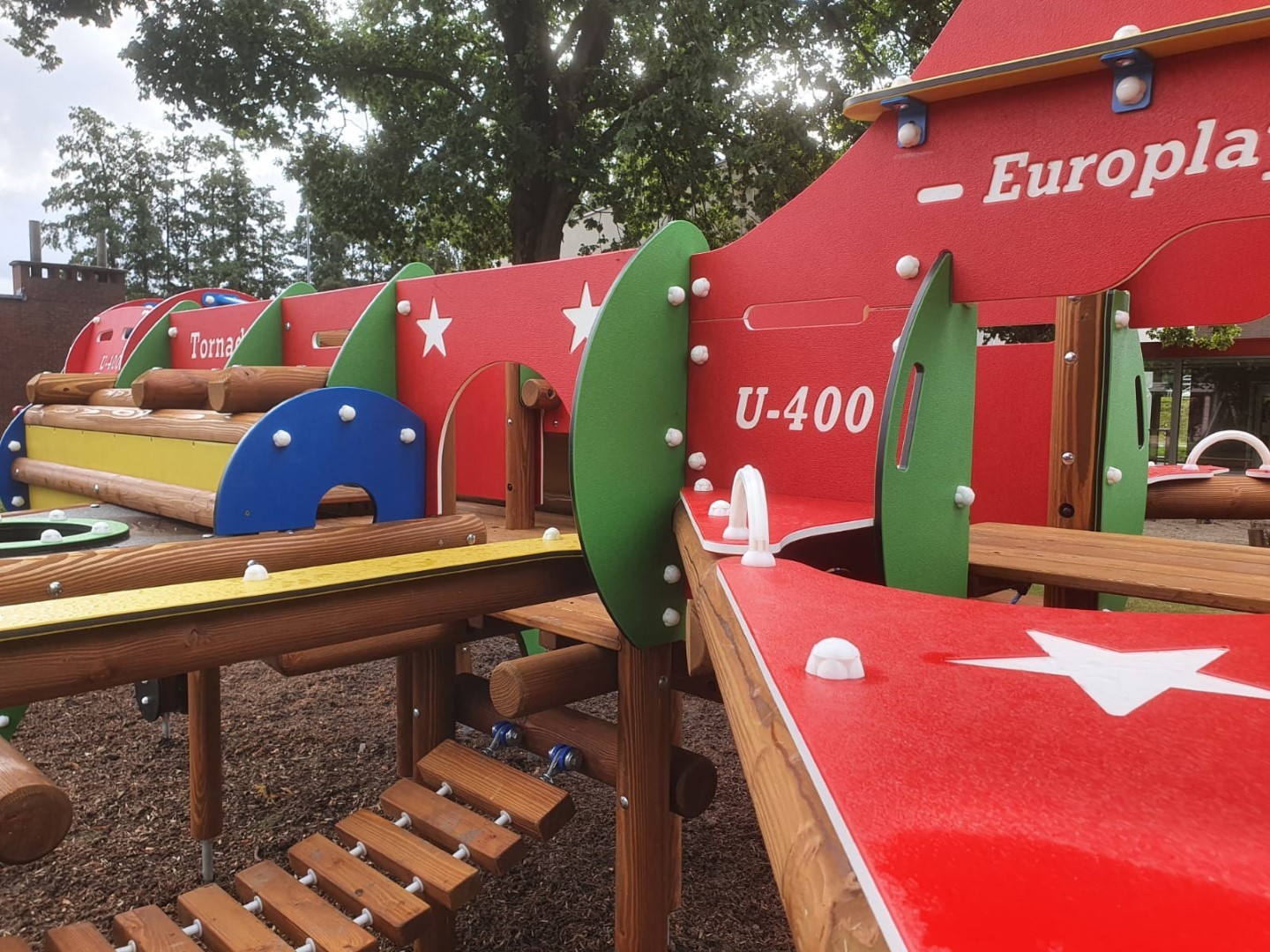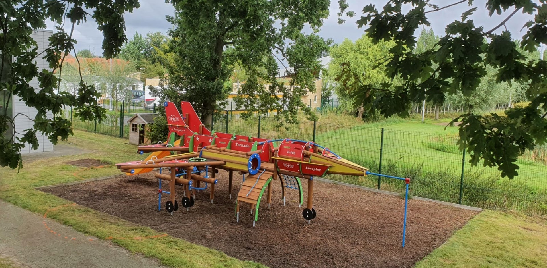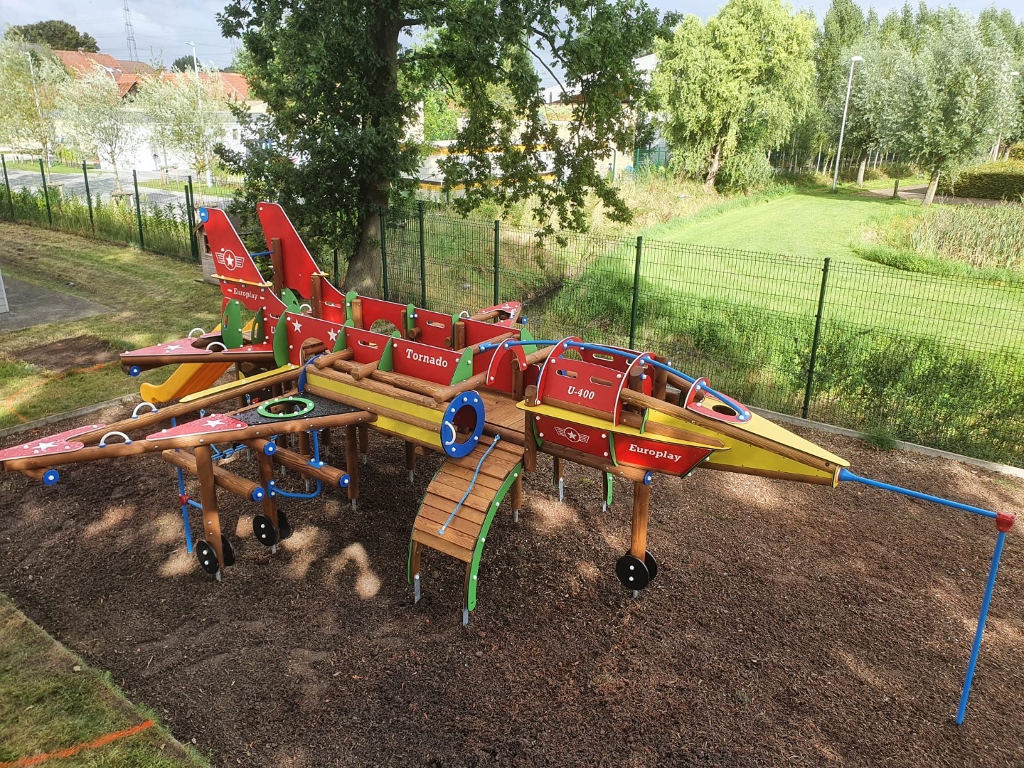 Het speeltoestel U401A Tornado in de vorm van een straaljager voor kinderen van 4 tot 10 jaar. De straaljager biedt een enorme waaier aan speelmogelijkheden. Kinderen kunnen overal doorklimmen en klauteren. Er is vooraan een duikelrek voorzien. De cockpit bevat een stuur en kan bereikt worden via een klimnet of klimboog. Aan de zijkanten van de straaljager zijn 2 kruiptunnels. Achteraan het toestel is er een wiebelbrug, evenwichtsnet en klimmuur. Kinderen kunnen de straaljager verlaten via de kunststof glijbaan. De panelen zijn in HDPE Polyethyleen. Alle moeren en bouten worden volledig afgescherm met kunststof afdekdoppen. Alle metalen onderdelen zijn roestvrij voorbehandeld en polyester gecoat.