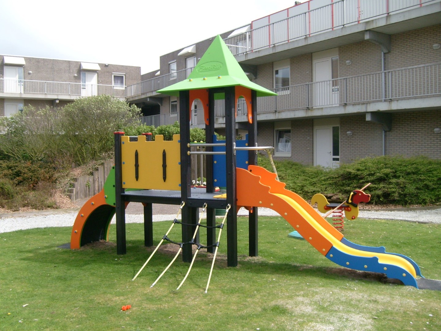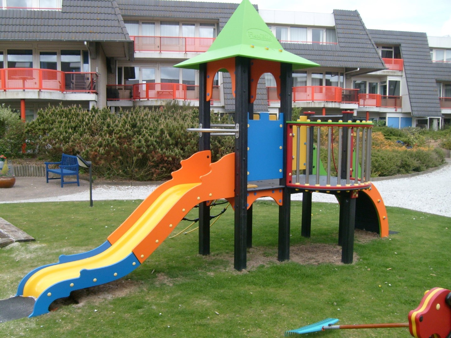 In de besloten binnentuin van het Amelander paradijs diende er een kleurrijk speeltoestel van kunststof te komen i.v.m. invloeden van de zoute zee. De keuze is gevallen op de Kabouter Klim van Flexibilo, geschikt voor kinderen van 3-8 jaar. De kinderen kunnen nu samen met hun ouders en opa en oma in een veilige omgeving spelen