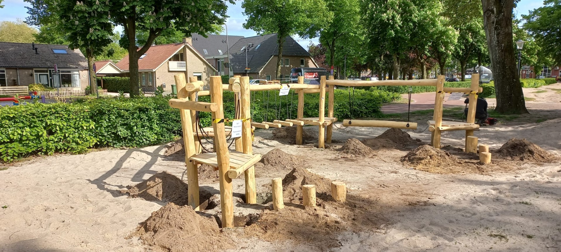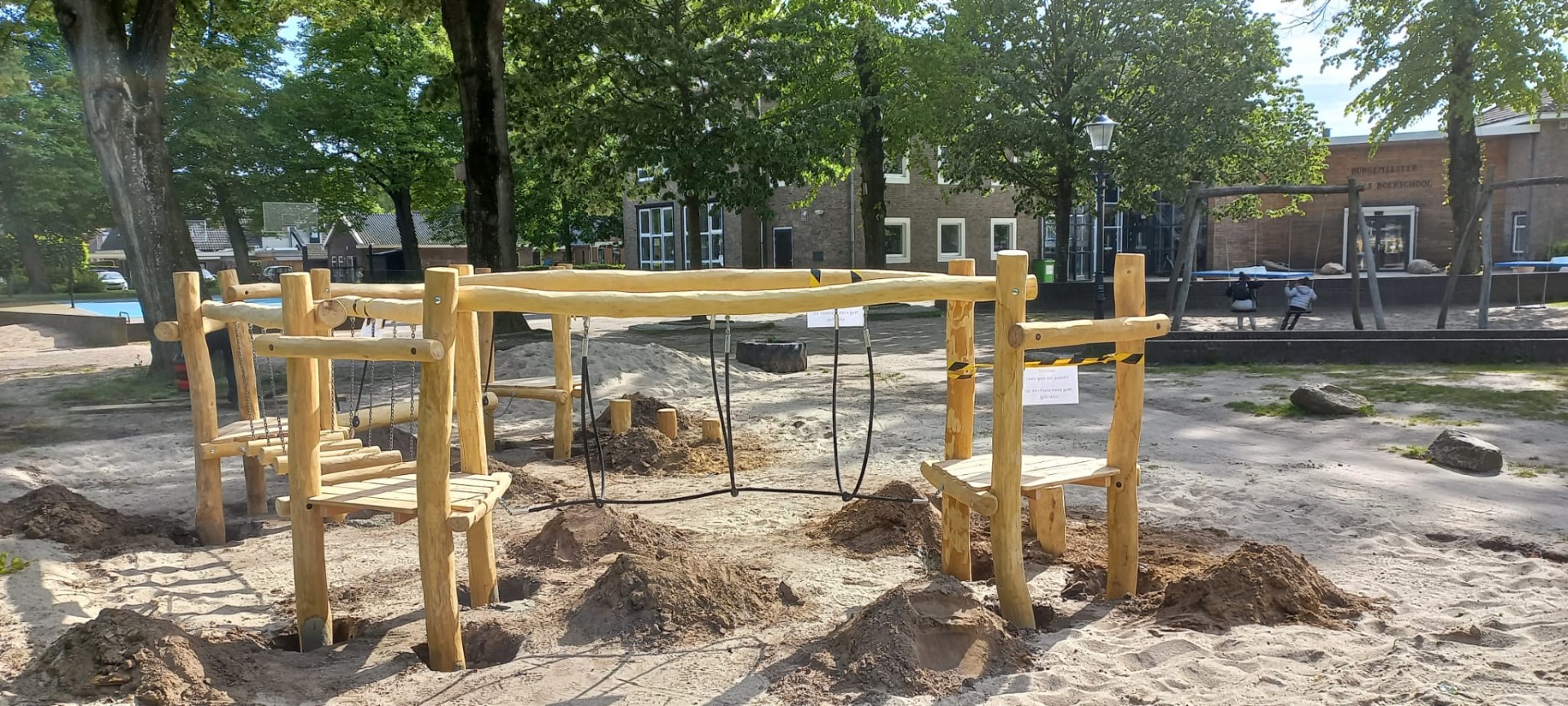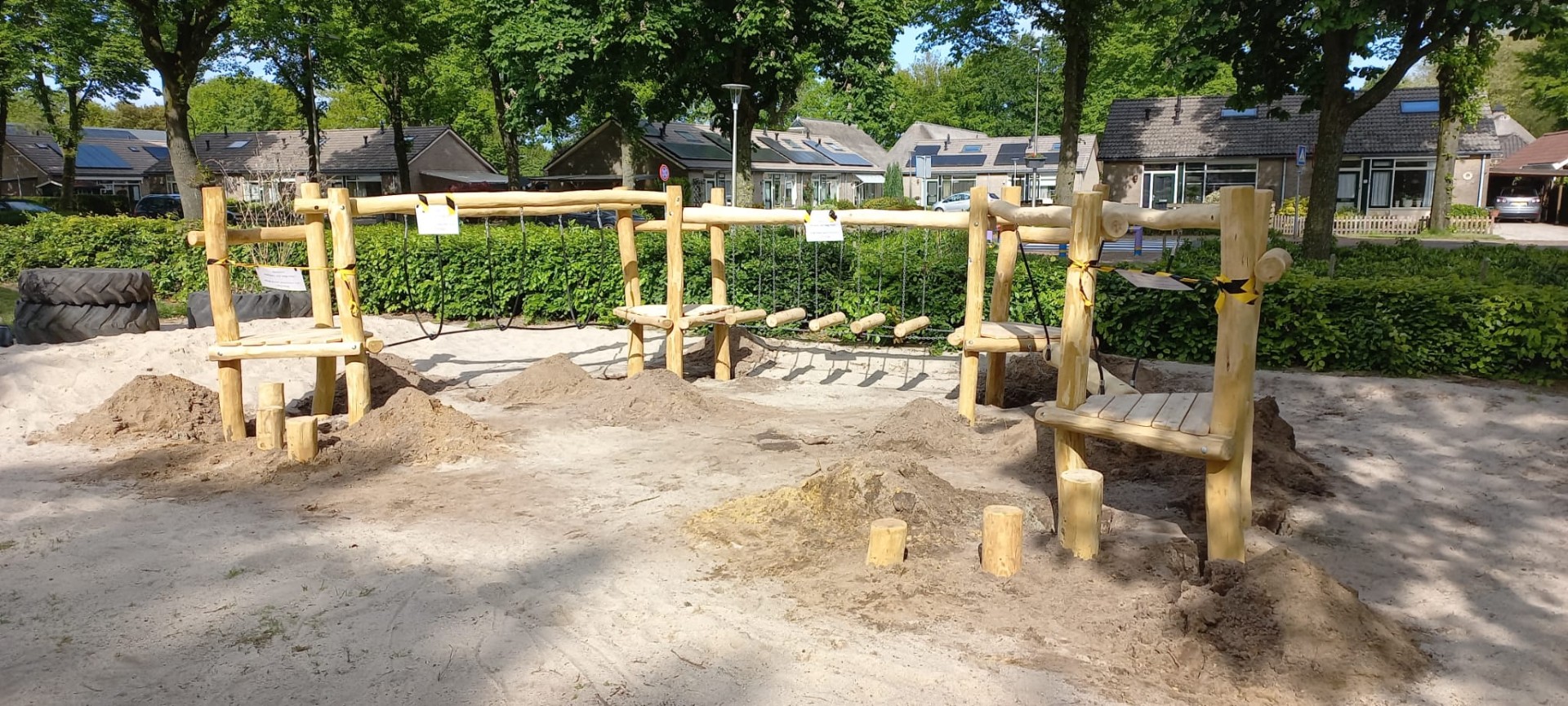 Vanuit een stichting in het dorp is er voor de school een behendigheidsparcours in robinia en een betonnen tafeltennistafel besteld die wij geleverd hebben en het parcours hebben wij ook geplaatst. Met vrijwillgers is de ondergrond aangepakt zodat de leerlingen nu veilig kunnen spelen.