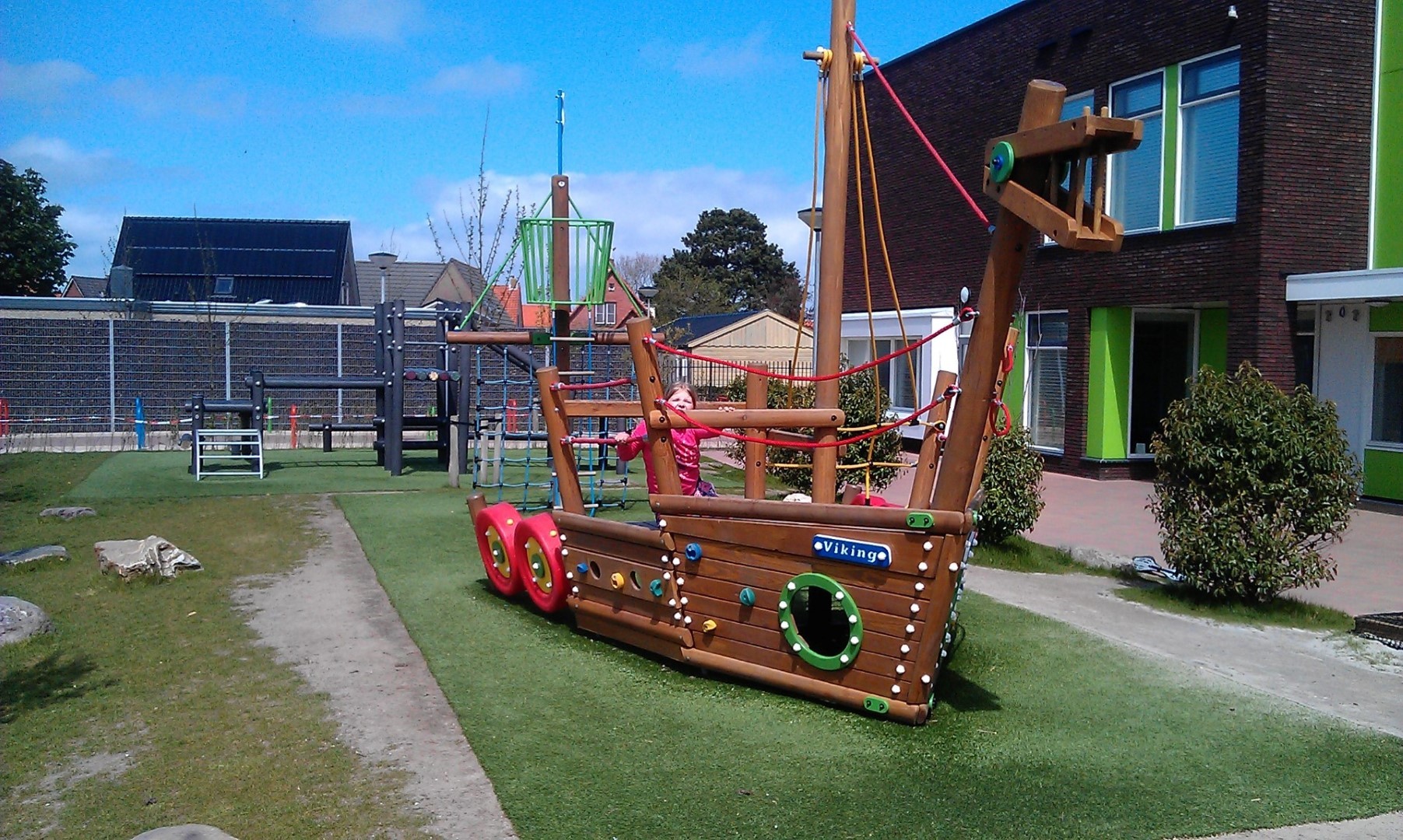In samenwerking met Hollander Hoveniers uit Breezand is er een Europlay Vikingboot (voorsteven) met kraaiennest en zeeroversvlag geplaatst bij de nieuwe Brede school in Den Oever. Als valdempend materiaal is hier gebruik gemaakt van kunstgras.