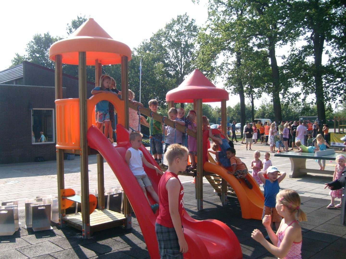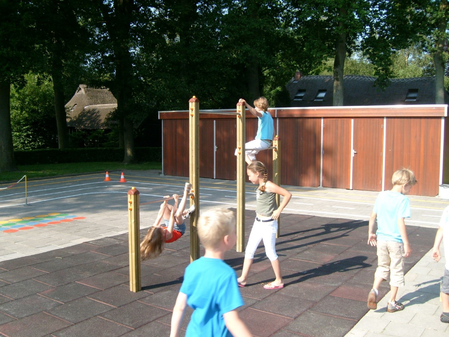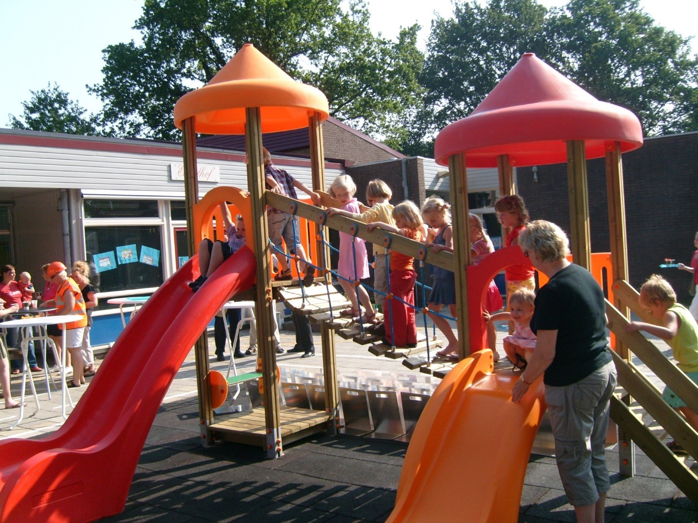 De Ekkelhof in Drouwen wilde een vrolijk speelplein voor de kinderen wat ook gebruikt kon gaan worden als autocircuit. Voor de speeltoestellen kozen ze voor speelcombinatie Aladin, duikelrek en klimrek van Holzhof. Onder de speeltoestellen werden rubbertegels aangebracht. Het vernieuwde schoolplein werd feestelijk geopend.