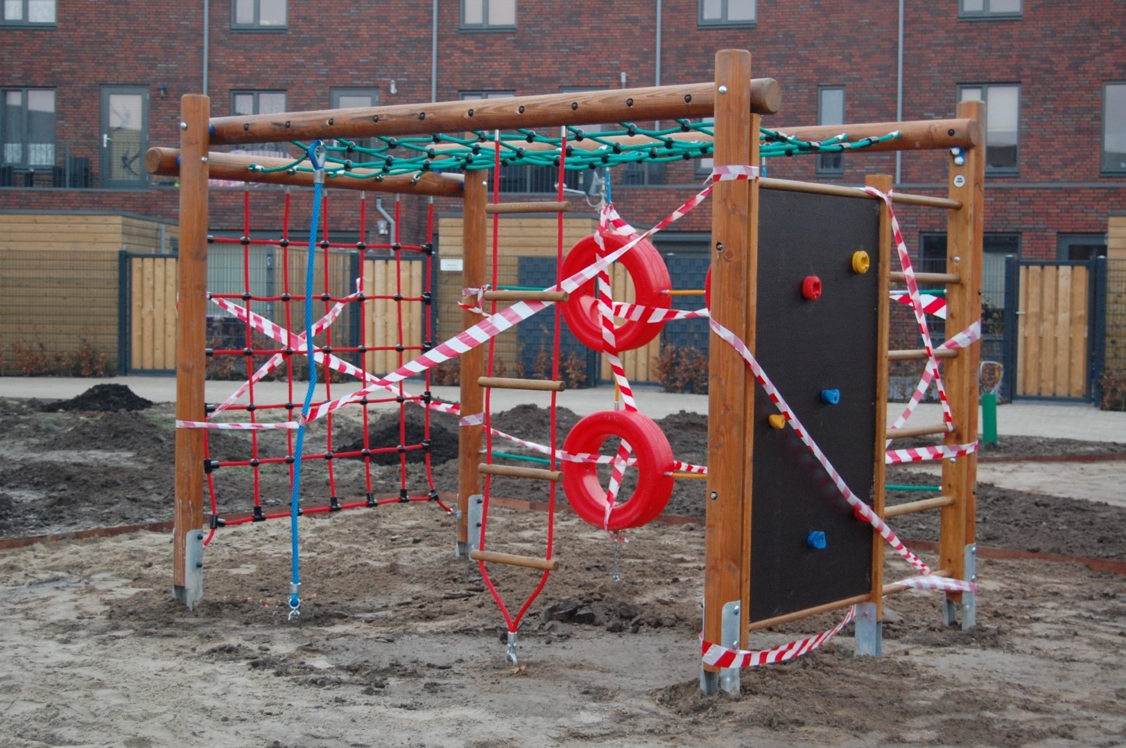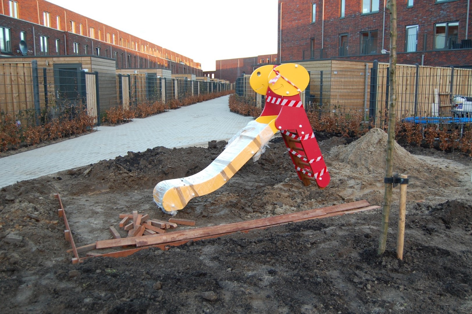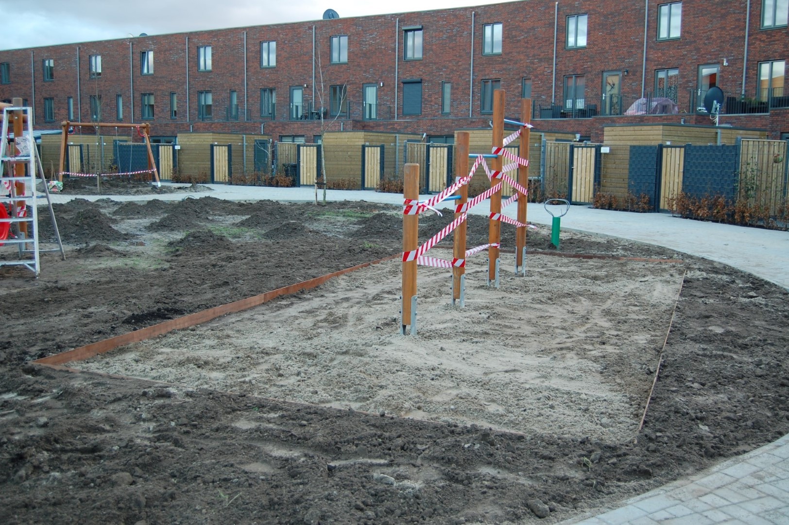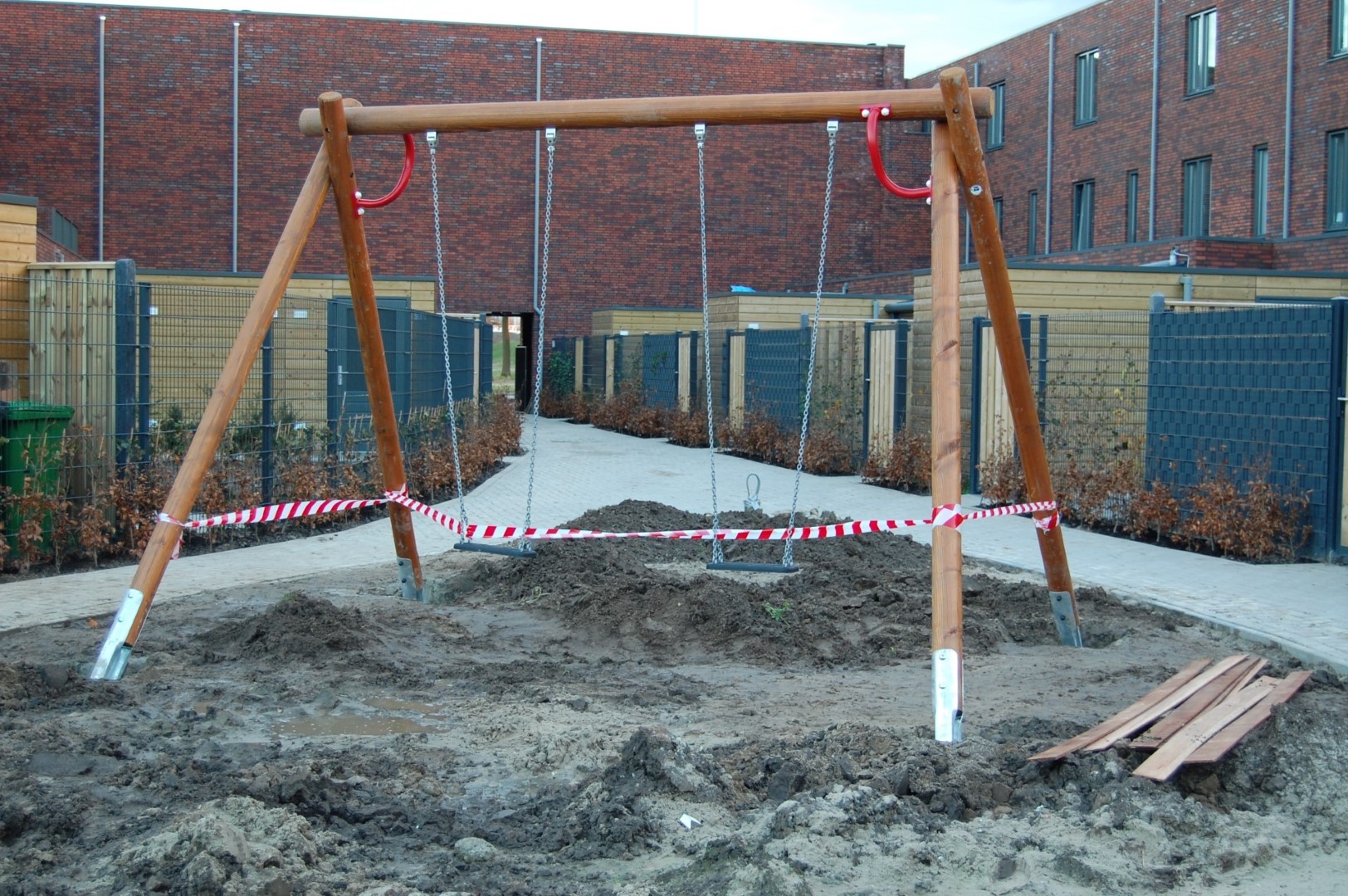 In een afgesloten binnentuin de Groene Hof in een nieuwbouwwijk is een speeltuin gerealiseerd voor de kinderen van de bewoners. het gaat hier om een Europlay schommel, glijbaan, duikelrek en lignet. Ook werd er een betonnen tafeltennistafel geplaatst. Het project werd begeleid door Jurgen Beckers die er voor zorgde dat er nadien een valdemping van kunstgras onder gekomen is. Leuke uitdagingen voor de kinderen van de wijk. Op de foto's is het beton aan het uitharden, vandaar de rood/wit lint afzettingen.