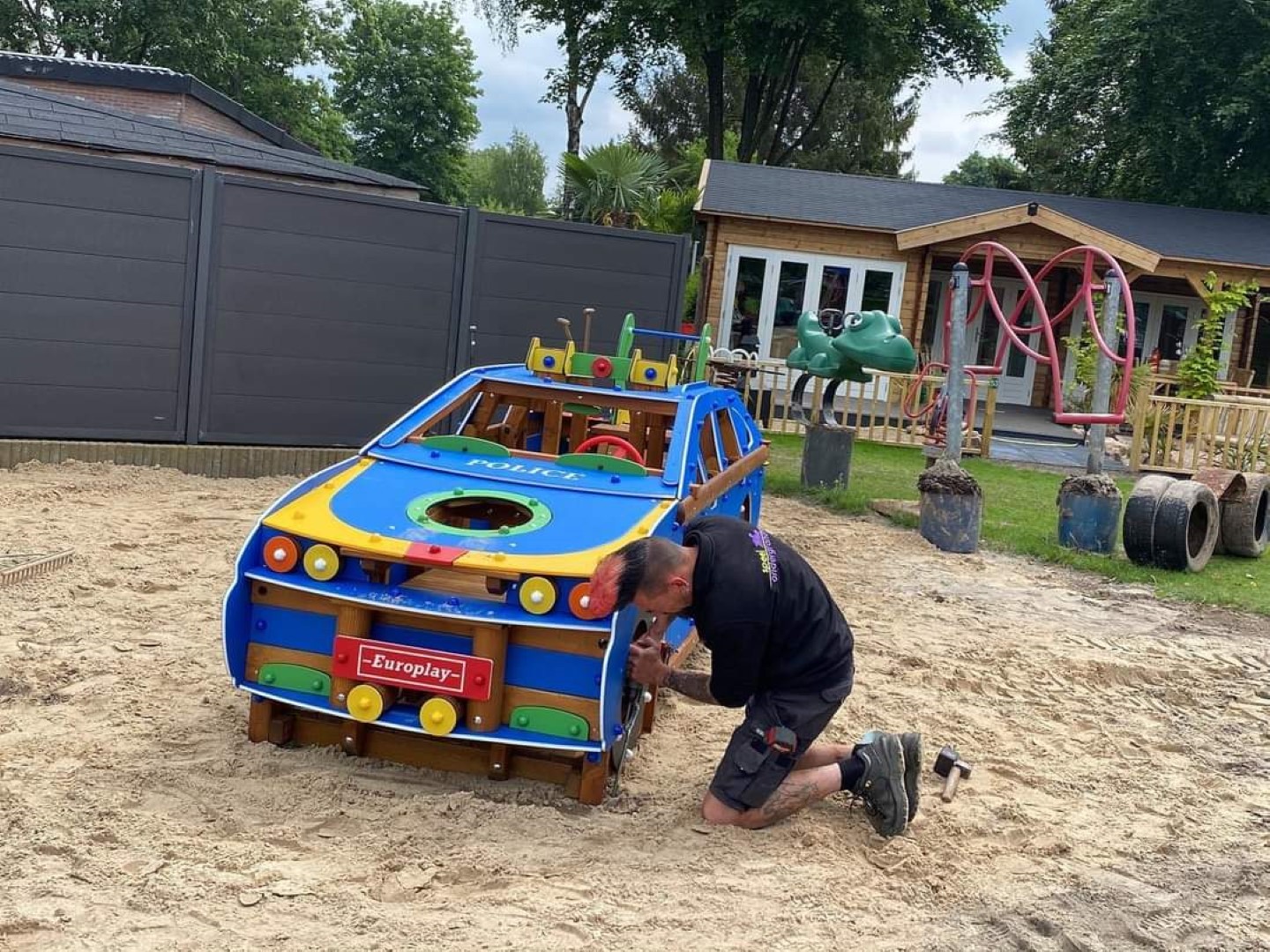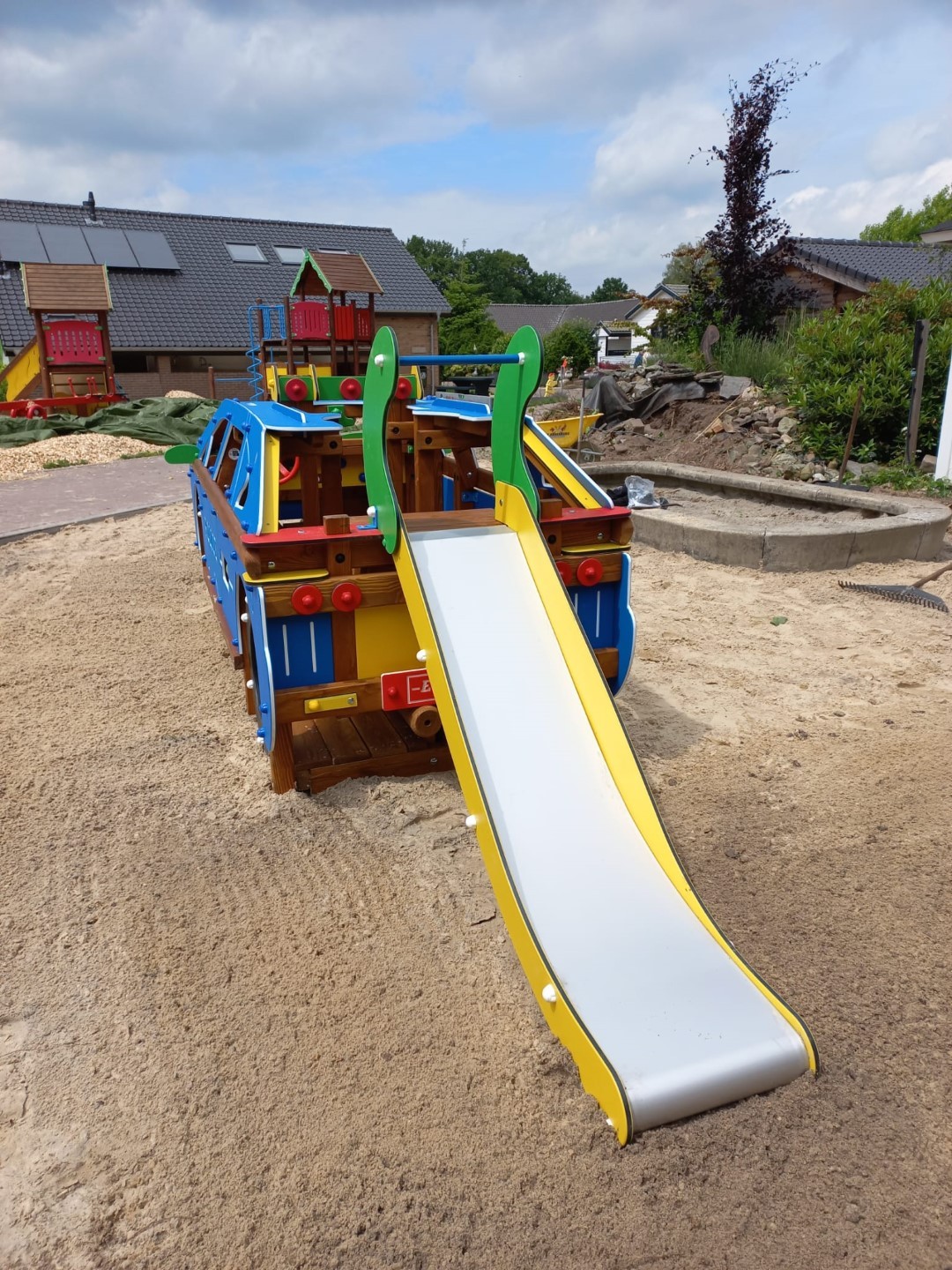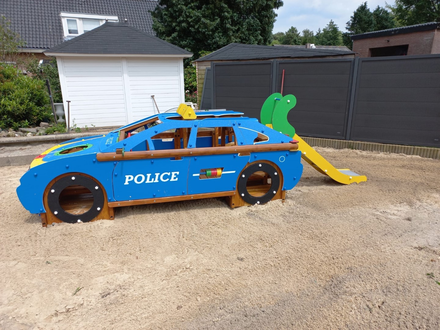 We hebben daar van Europlay de politiewagen geplaatst en de speeltoestellen zijn nagelopen en gerepareerd waar nodig. De kinderen kunnen weer veilig spelen.