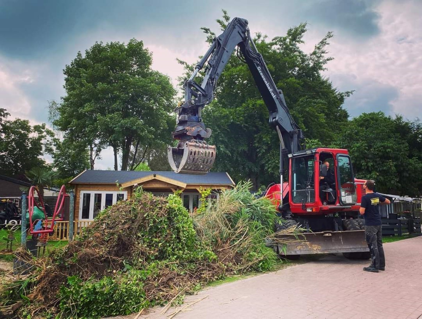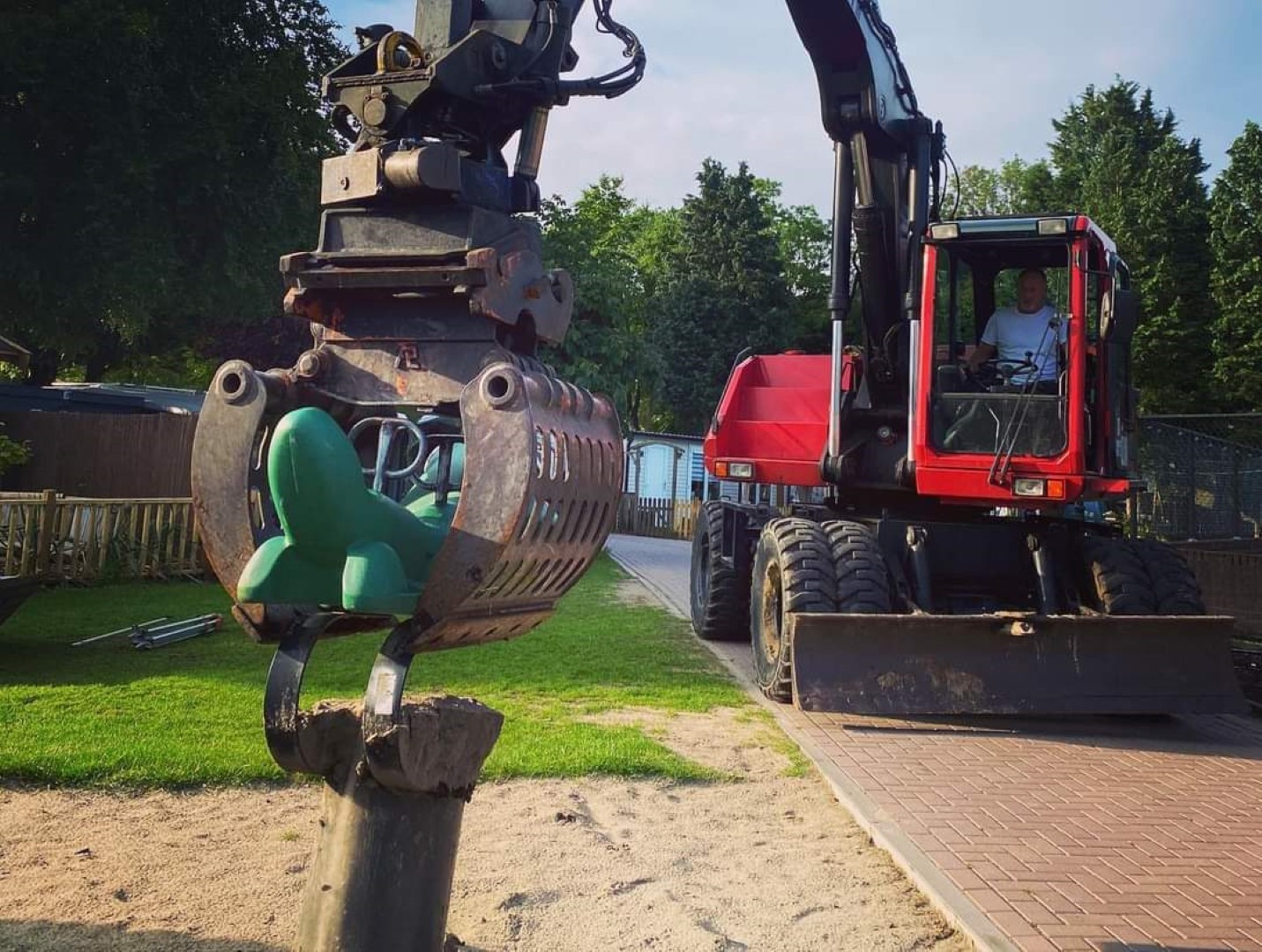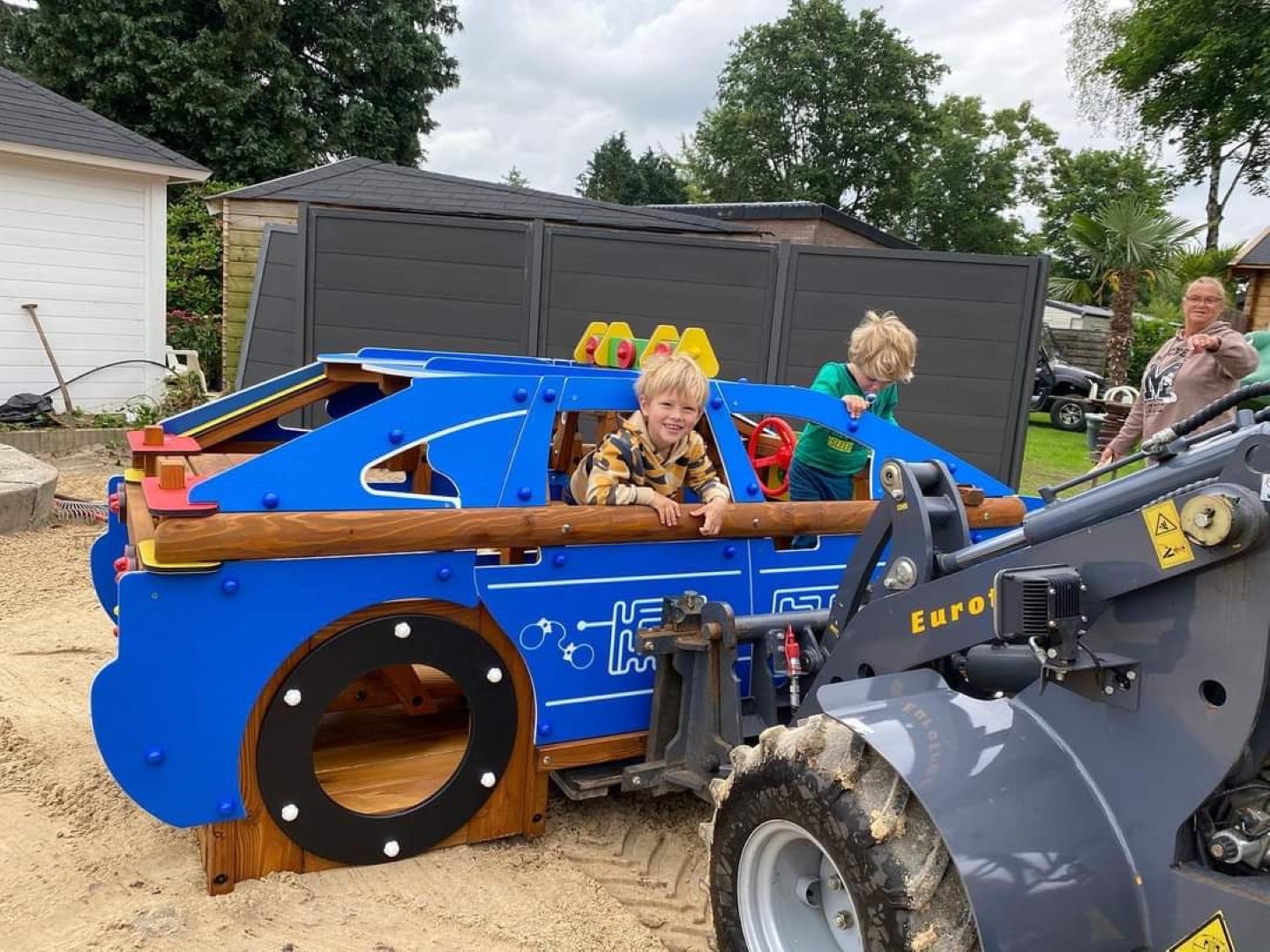 Moeder en dochter van dit chaletpark in Ermelo wilden graag een afspraak om mee te denken voor een bijzonder speeltoestel en de reparatie van enkele bestaande speeltoestellen en er waren ook nog houtsnippers nodig.