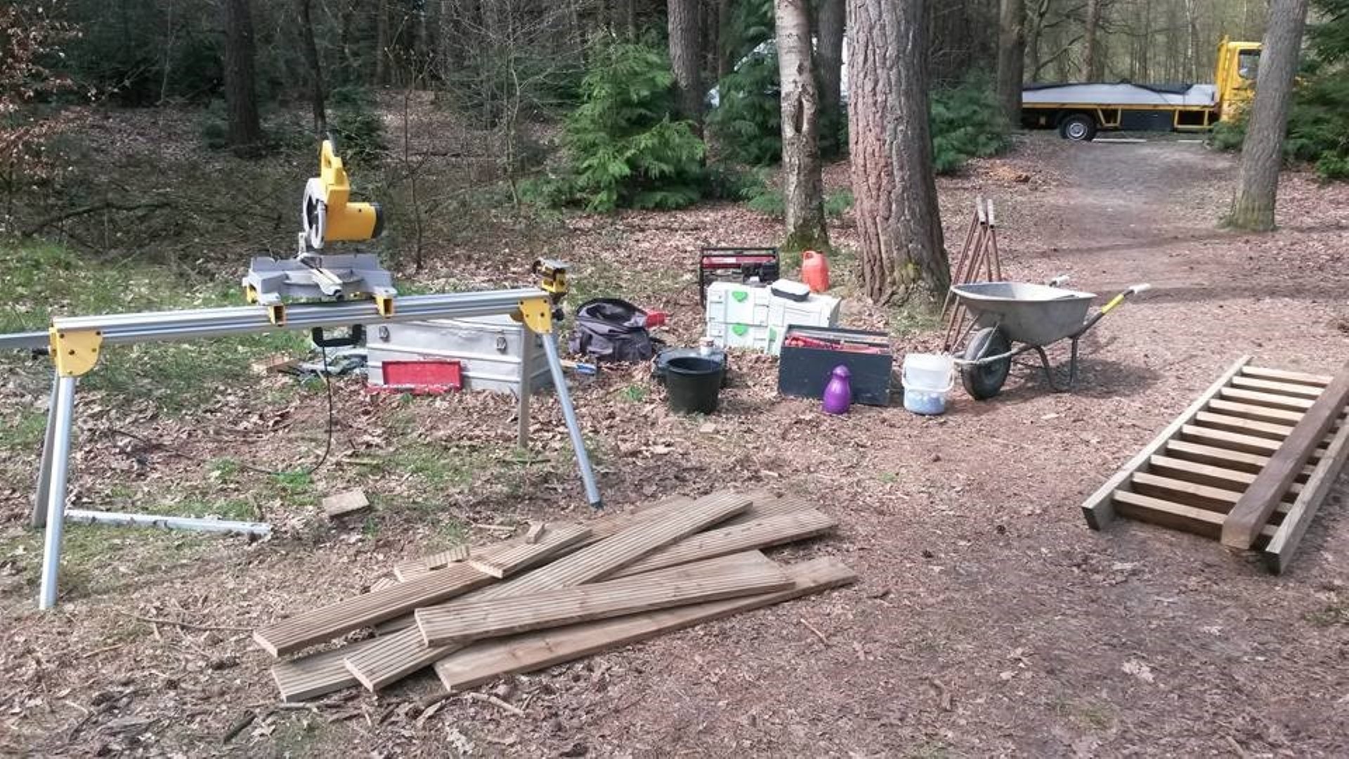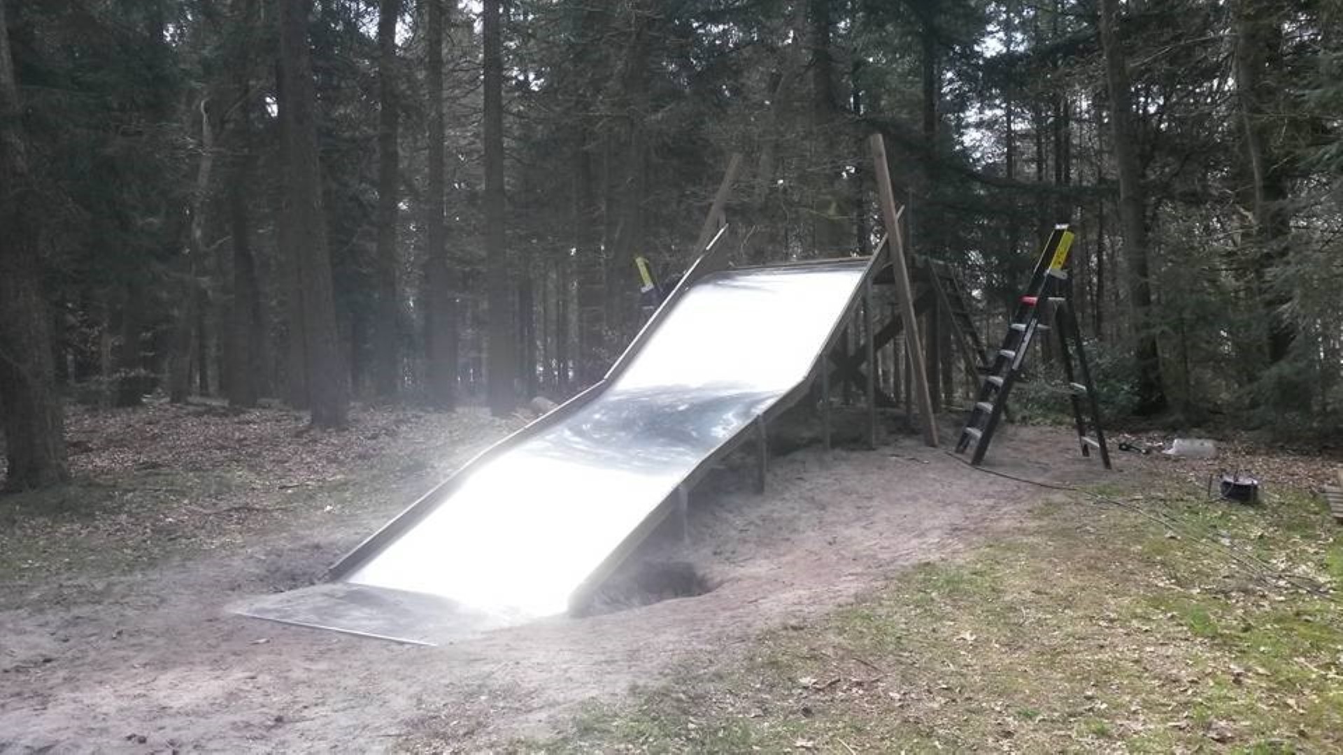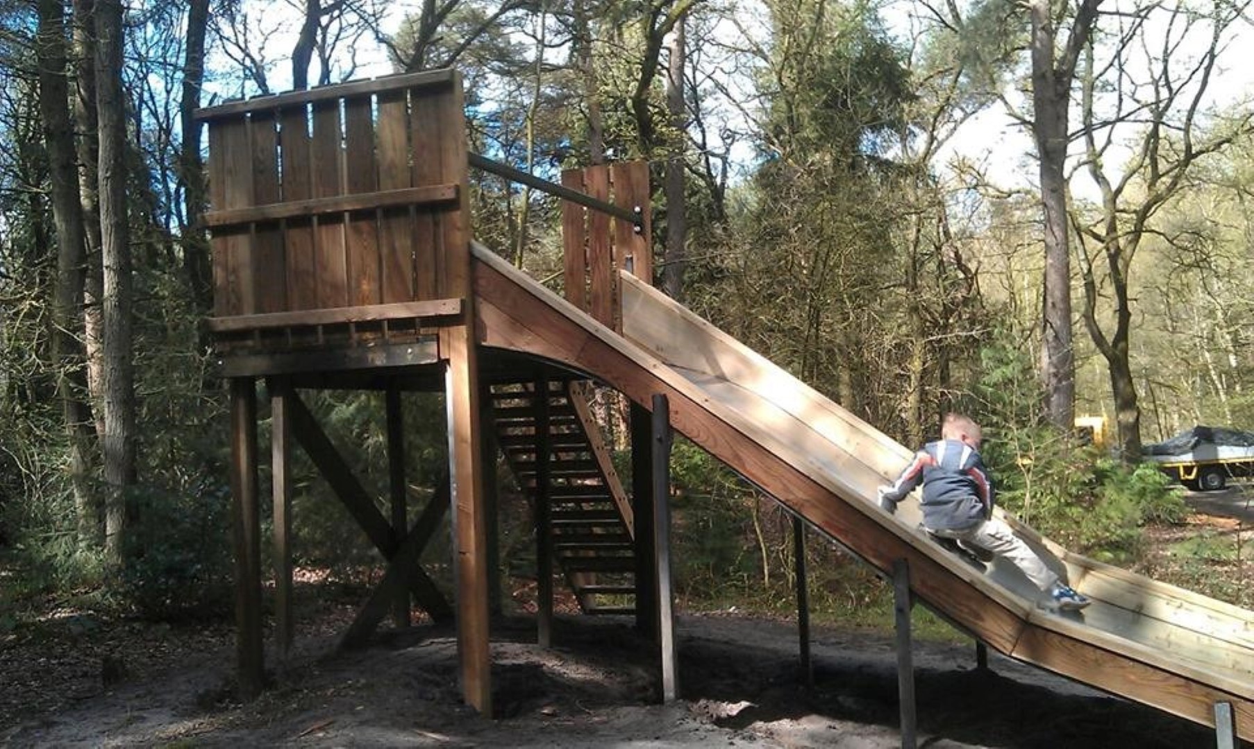 Een oude RVS glijbaan was niet veilig meer en is door ons volledig opgeknapt en veilig gemaakt met een nieuw bordes, hekwerk, trap met leuning, startbalk en glijbaanboorden. De speeltuin midden in het Blauwe Bos bij Haulerwijk is nu weer compleet.