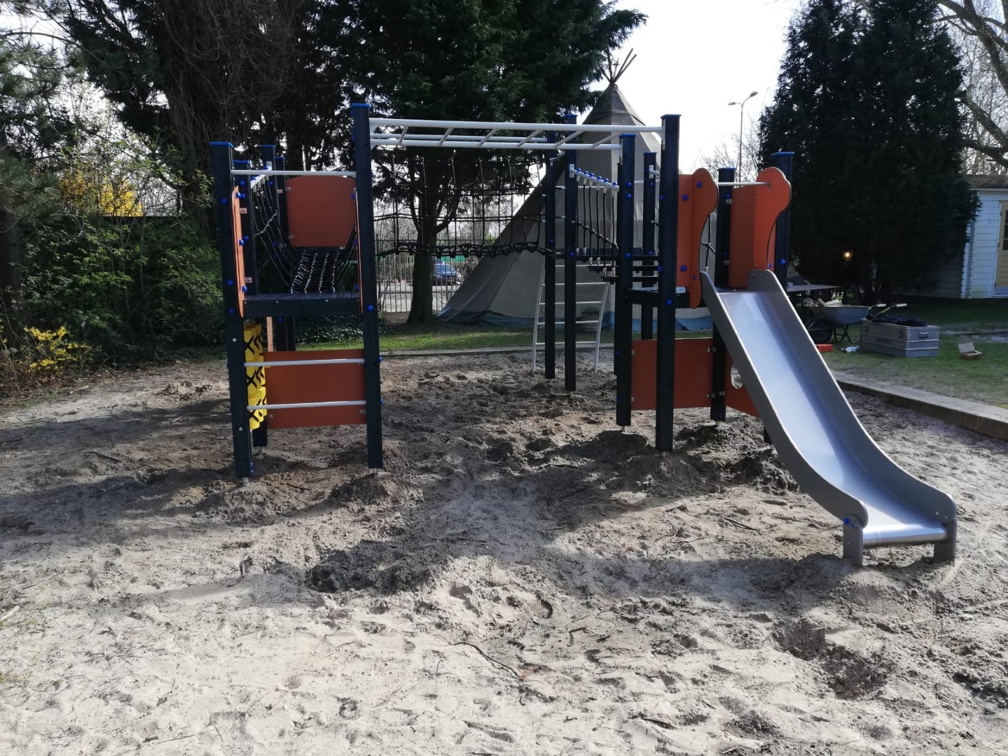 Op een later moment is er nog geplaatst: Tiptiptap speelcombinatie LM208 Alexandra, onze fabrikant uit Estland, gemaakt van hout en metalen steunen in de grond.