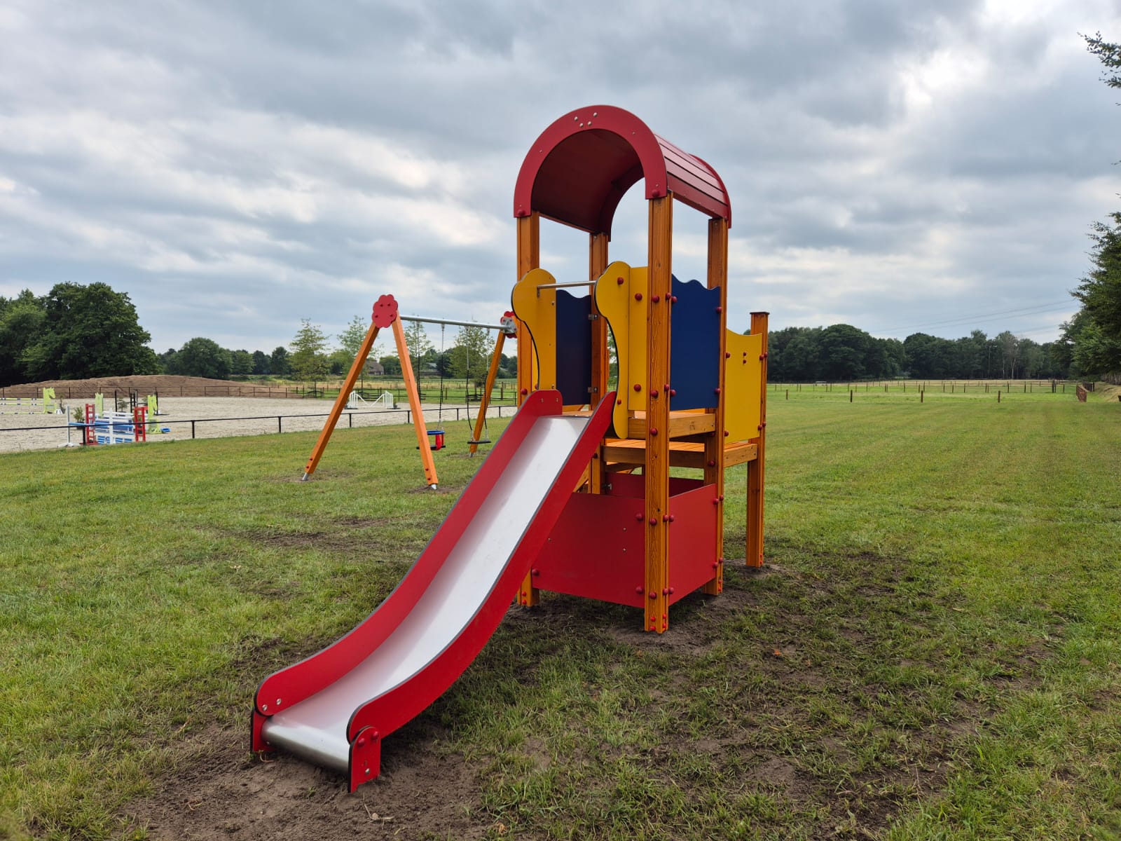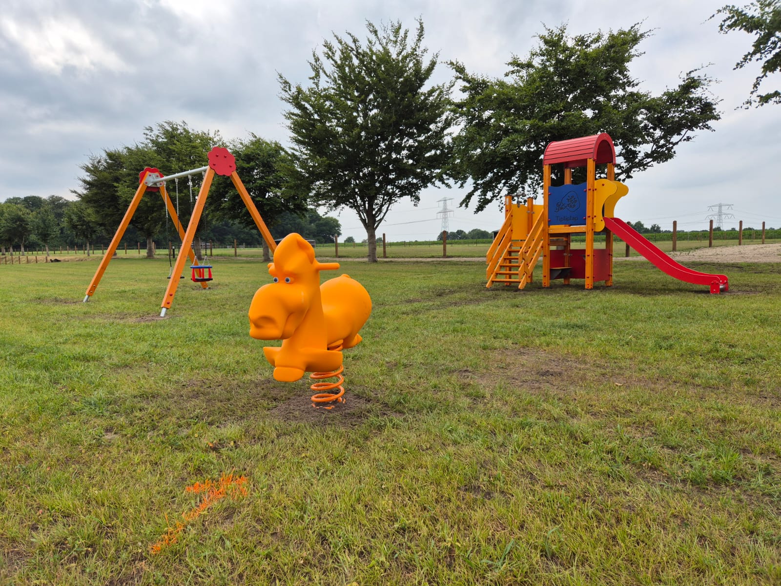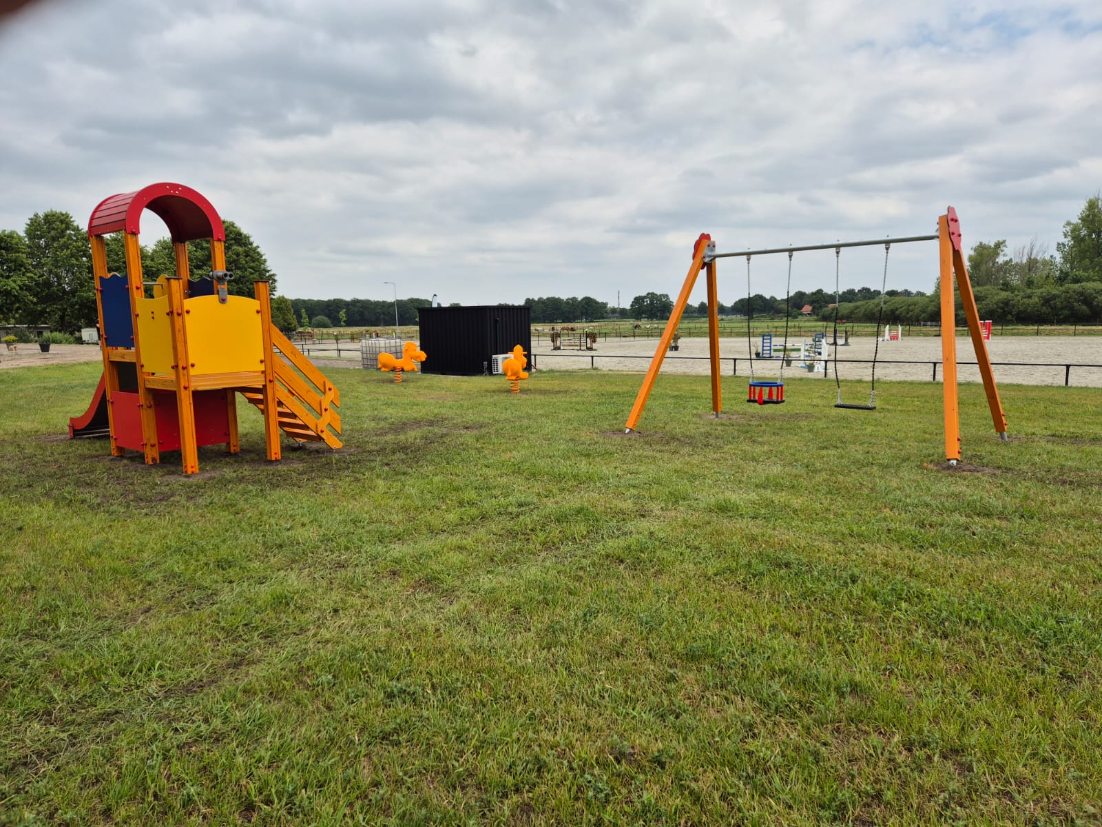 Hele enthousiaste eigenaren van een net overgenomen paardencomplex waren op zoek naar een paar speeltoestellen in zomerkleuren en de wipveren moesten bij voorkeur een paard zijn.