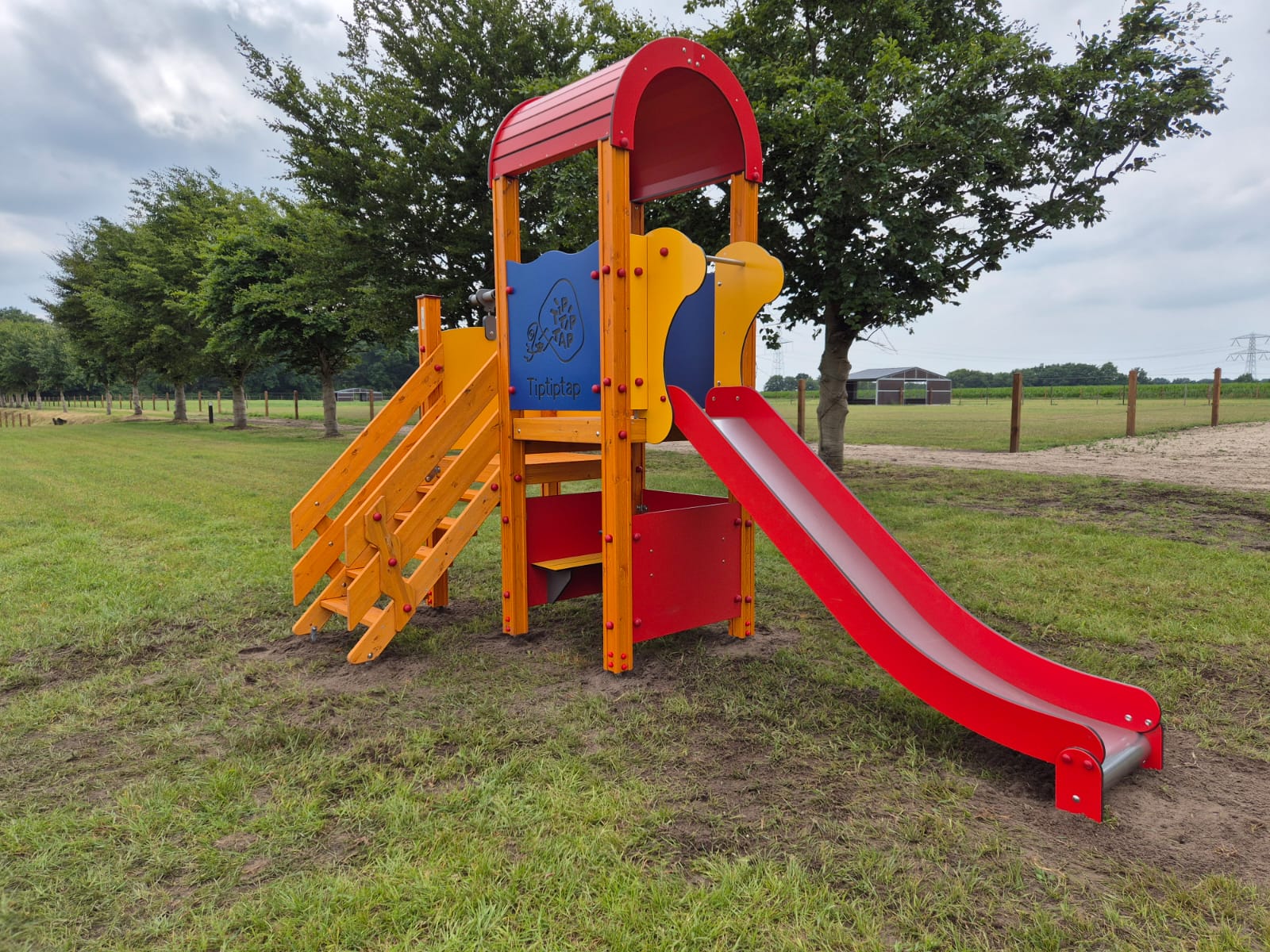 Keuze was gevallen op het speeltoestellen assortiment van TIPTIPTAP met gelamineerde staanders en HDPE panelen.