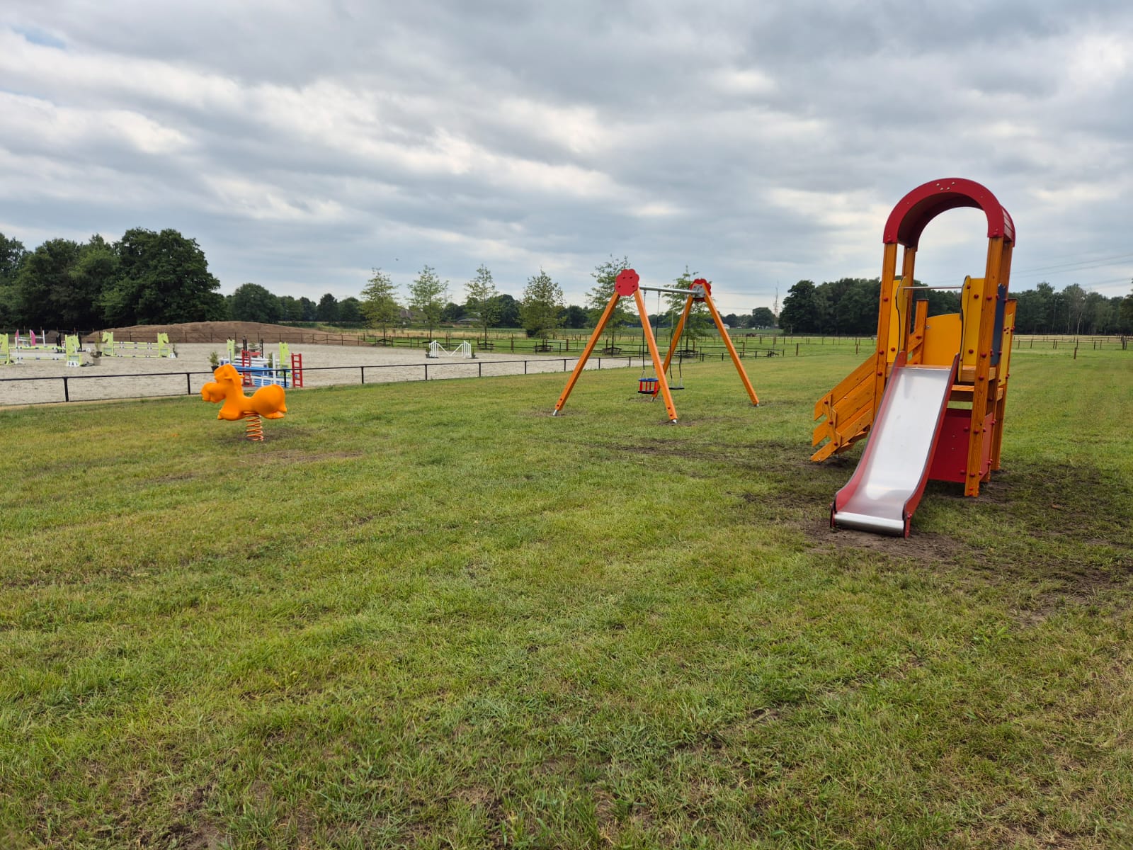 Er was alle ruimte, dus lekker genieten door de kinderen, vliegen, draven, klimmen, glijden, schommelen en wippen op de paarden.