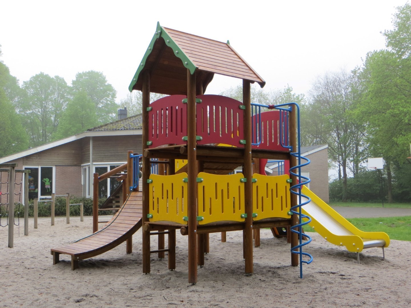 De mooi gelegen school de Vlinderhof in het Drentse Noord Sleen wilde een mooie grote speelcombinatie als vervanger van een bestaand speeltoestel. Via Wim Mulder kwam men bij ons uit en werd men enthousiast over de Europlay speelcombinatie Amsterdam voor kinderen in de leeftijdscategorie 3-15 jaar. Valdempend zand er onder en spelen maar. Op dit speeltoestel komen de kinderen heel veel klimmogelijkheden tegen. Veel speelplezier gewenst
