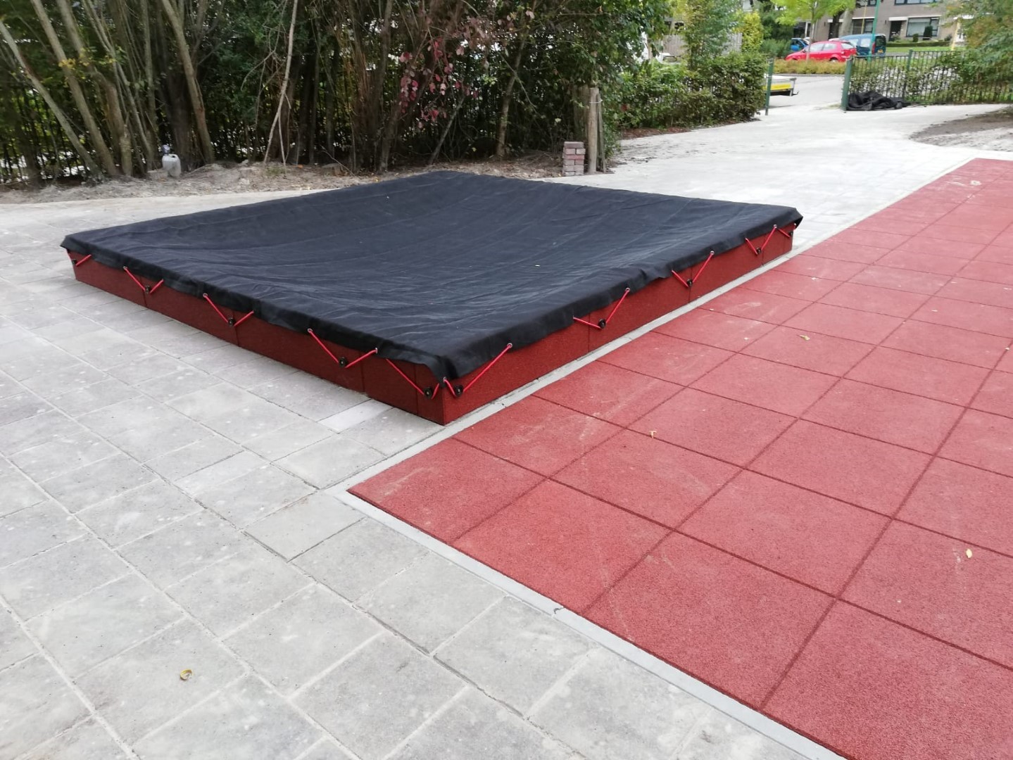Door Scala is opdracht verleend voor de levering en plaatsing van 2 speeltoestellen, 1 zandbak en valdempende rubbertegels.