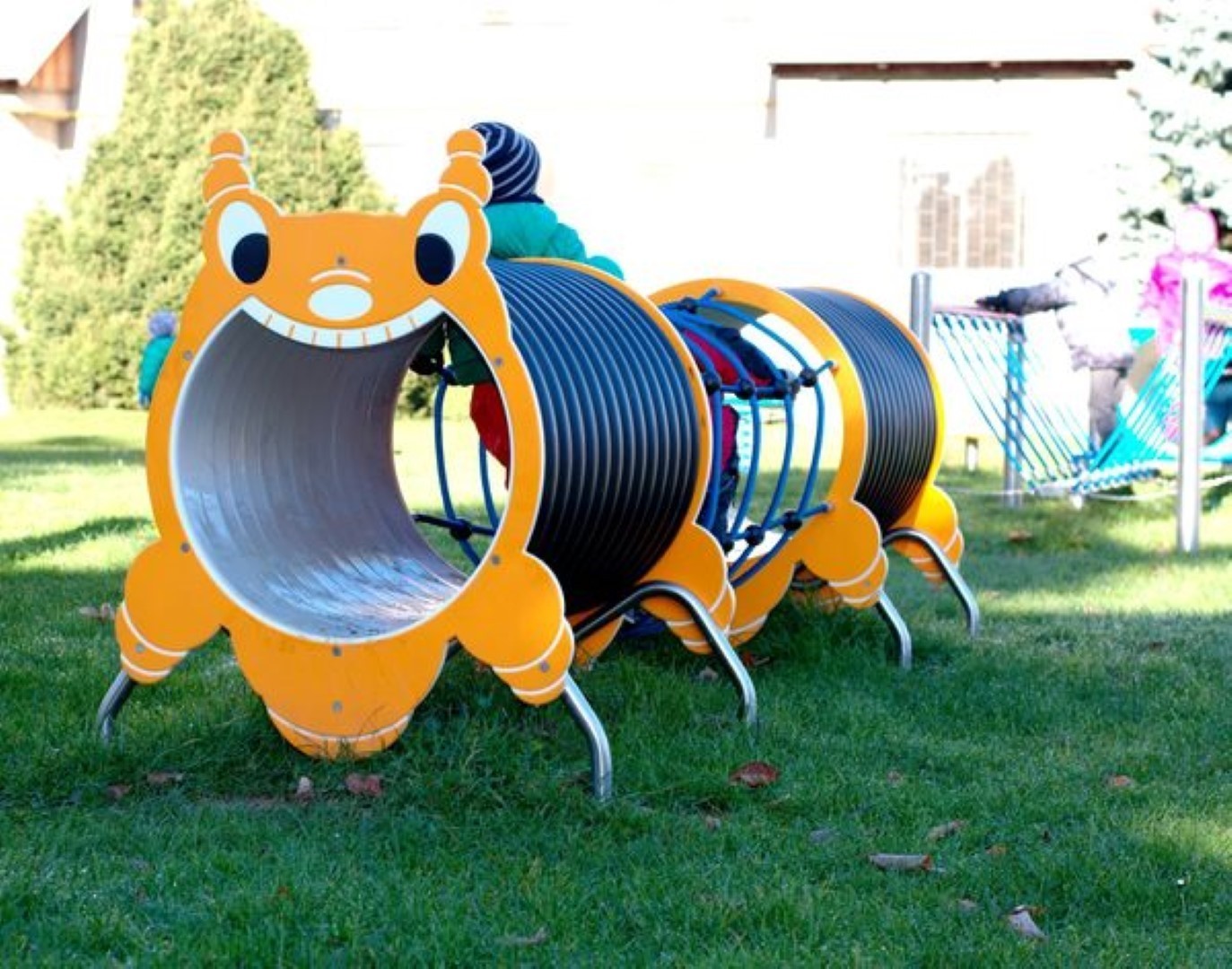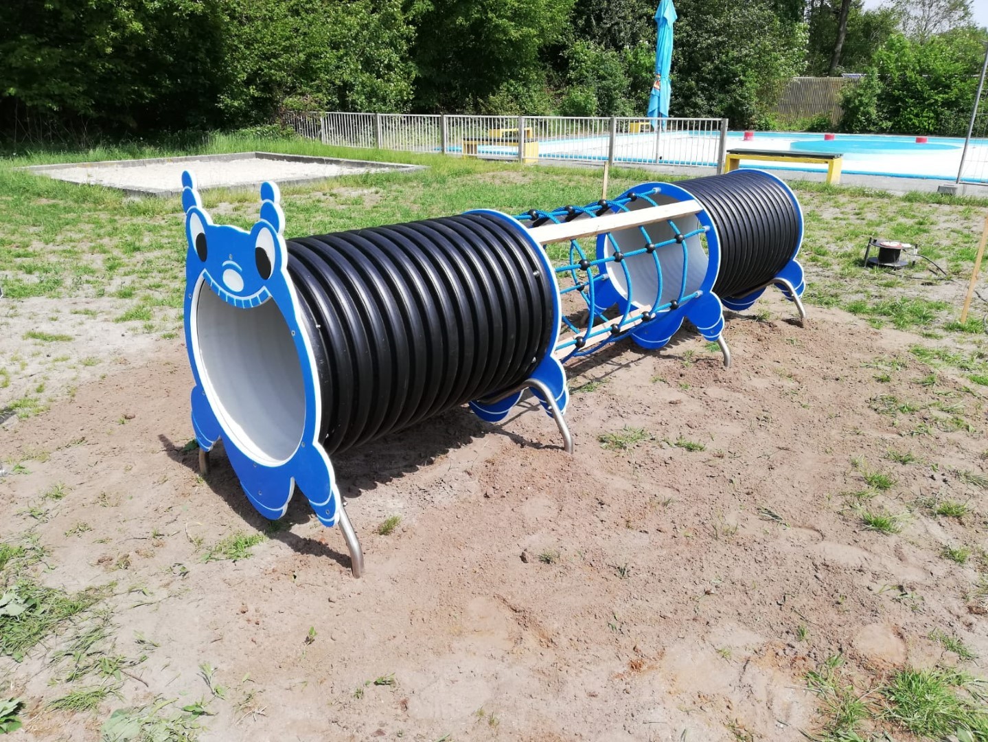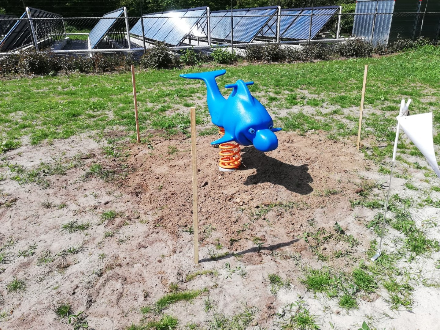 Er was een potje gevonden om het grasveld bij het zwembad aan te kleden met een paar speeltoestellen voor de jongste jeugd.