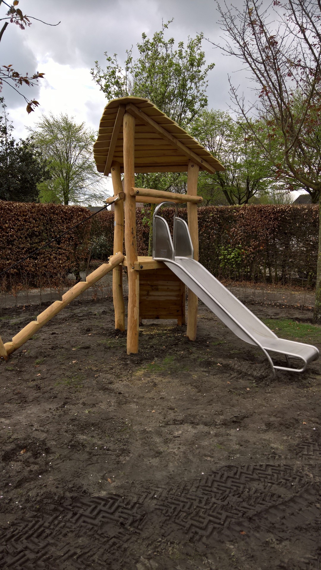 Speeltoren met RVS glijbaan, plateauhoogte 100 cm