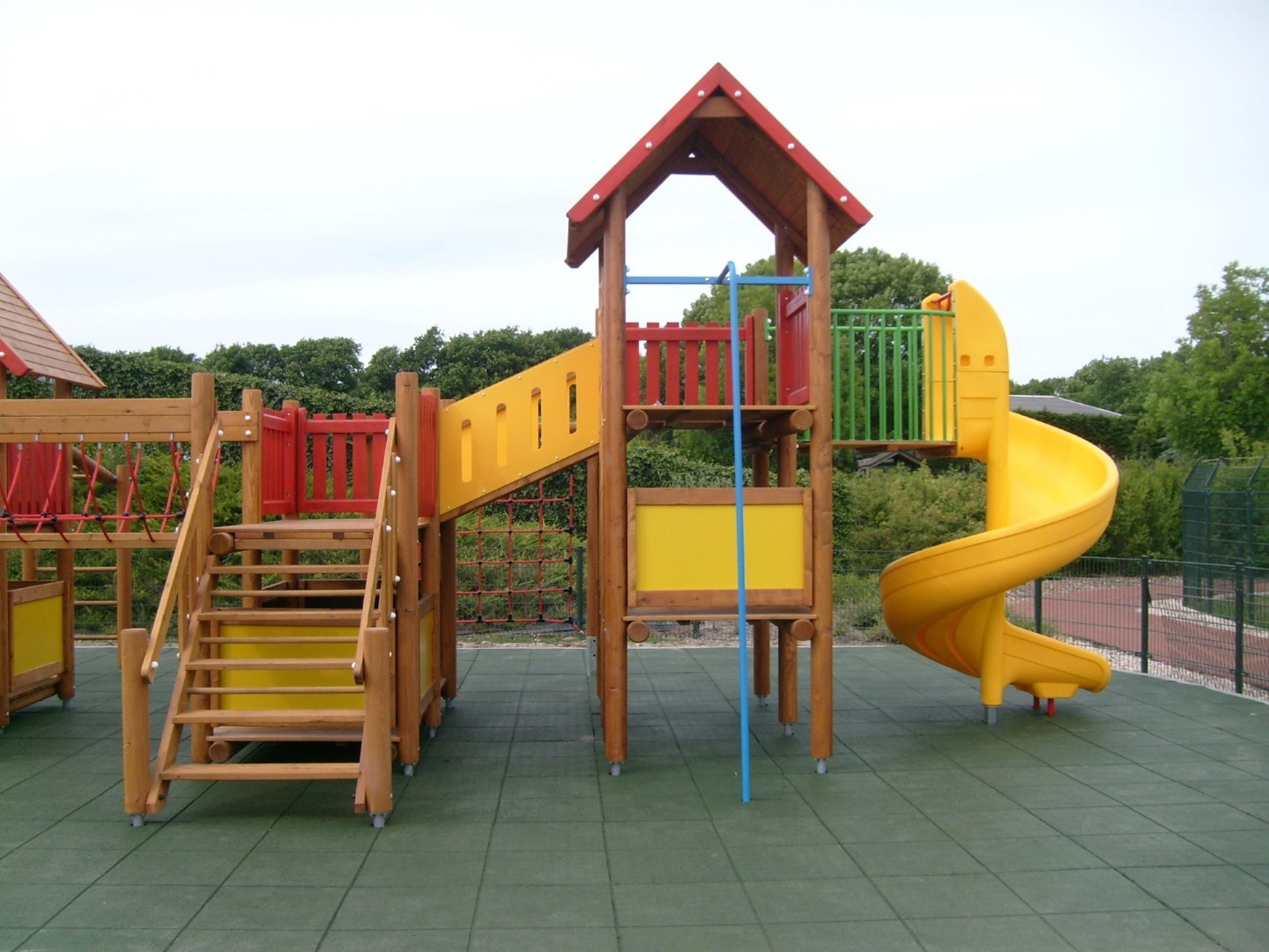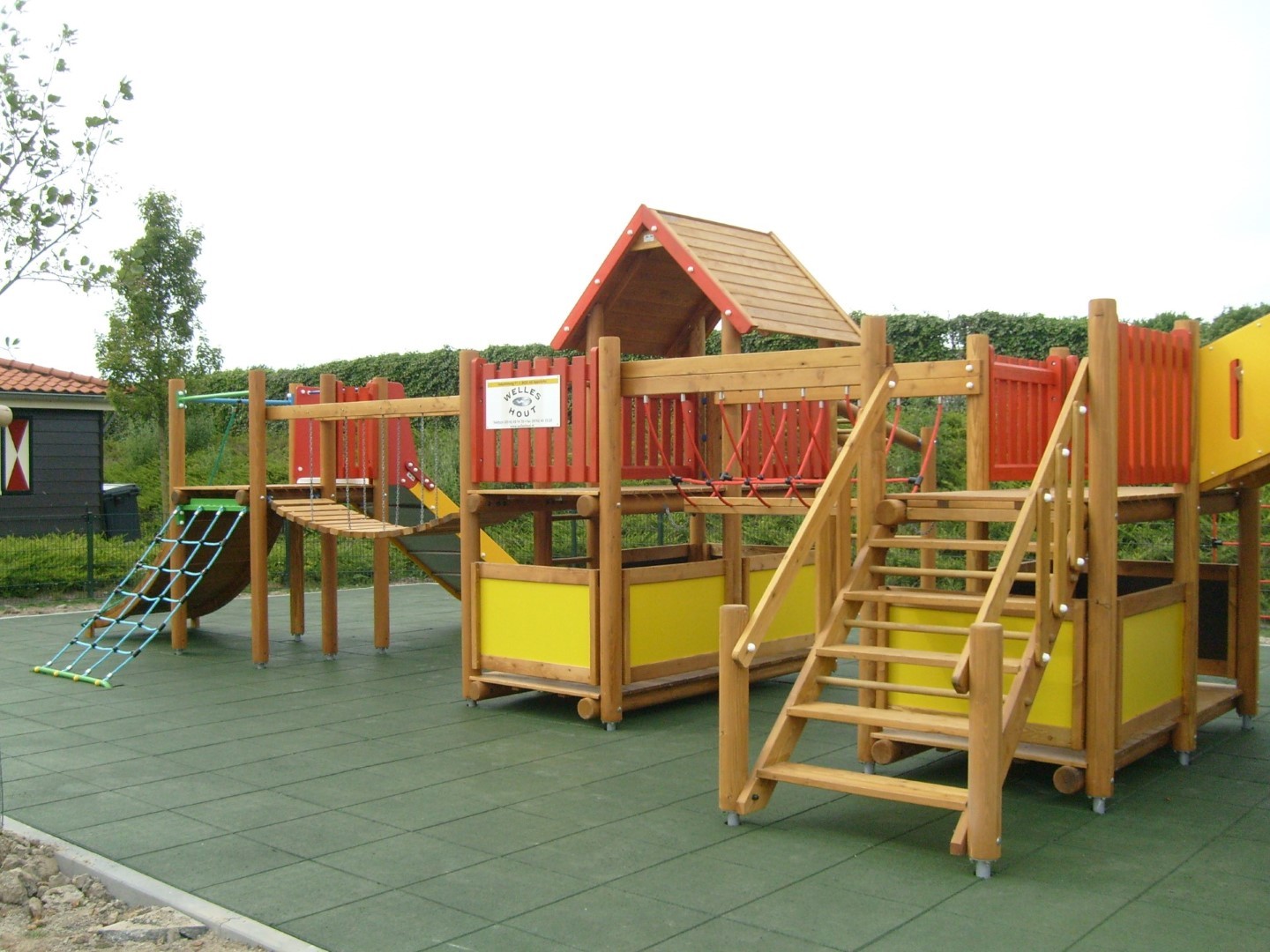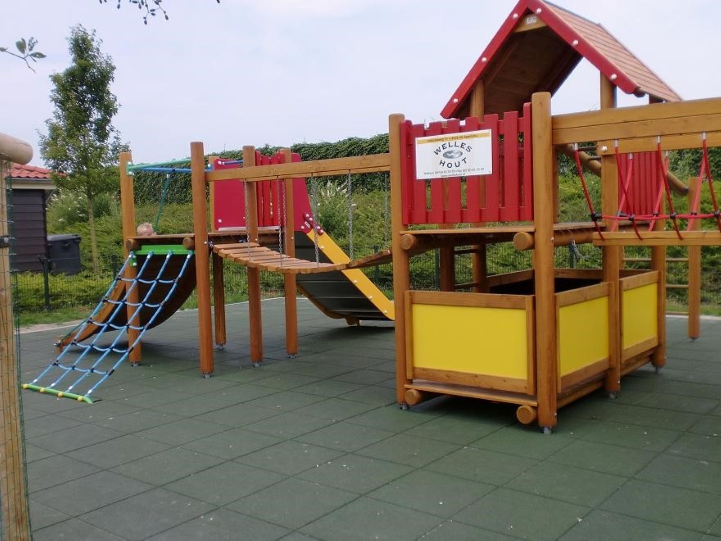 In het supermooie, kleinschalige dierenpark Blanckendael in Tuitjenhorn hebben wij een Europlay speelcombinatie Lissabon geplaatst op een ondergrond van groene rubbertegels. Dit speeltoestel is geschikt voor kinderen van 3-15 jaar. Het is een fantastische speelplek geworden waar de jeugd naast het bewonderen van allerlei dieren ook veel plezier kan beleven met dit grote speeltoestel
