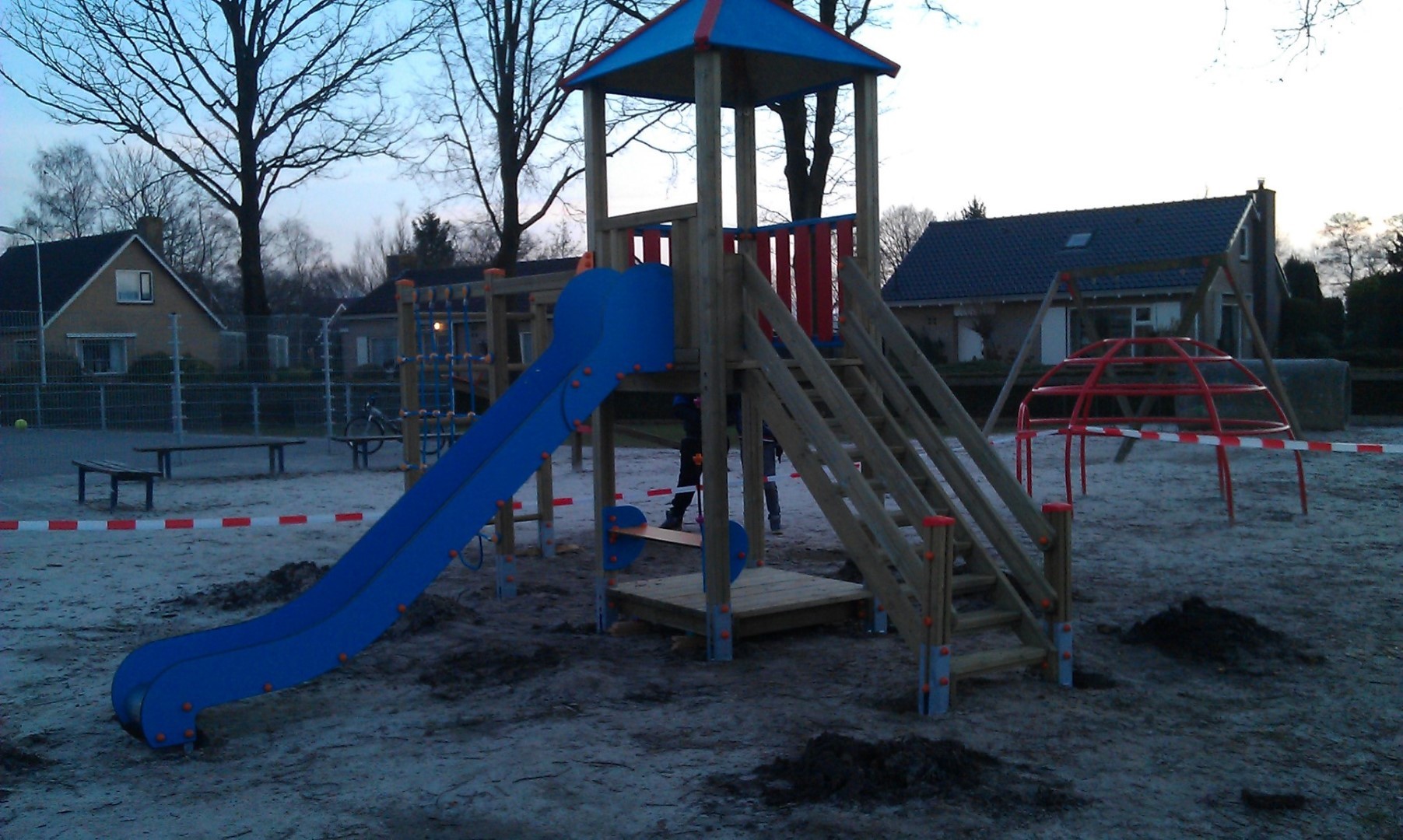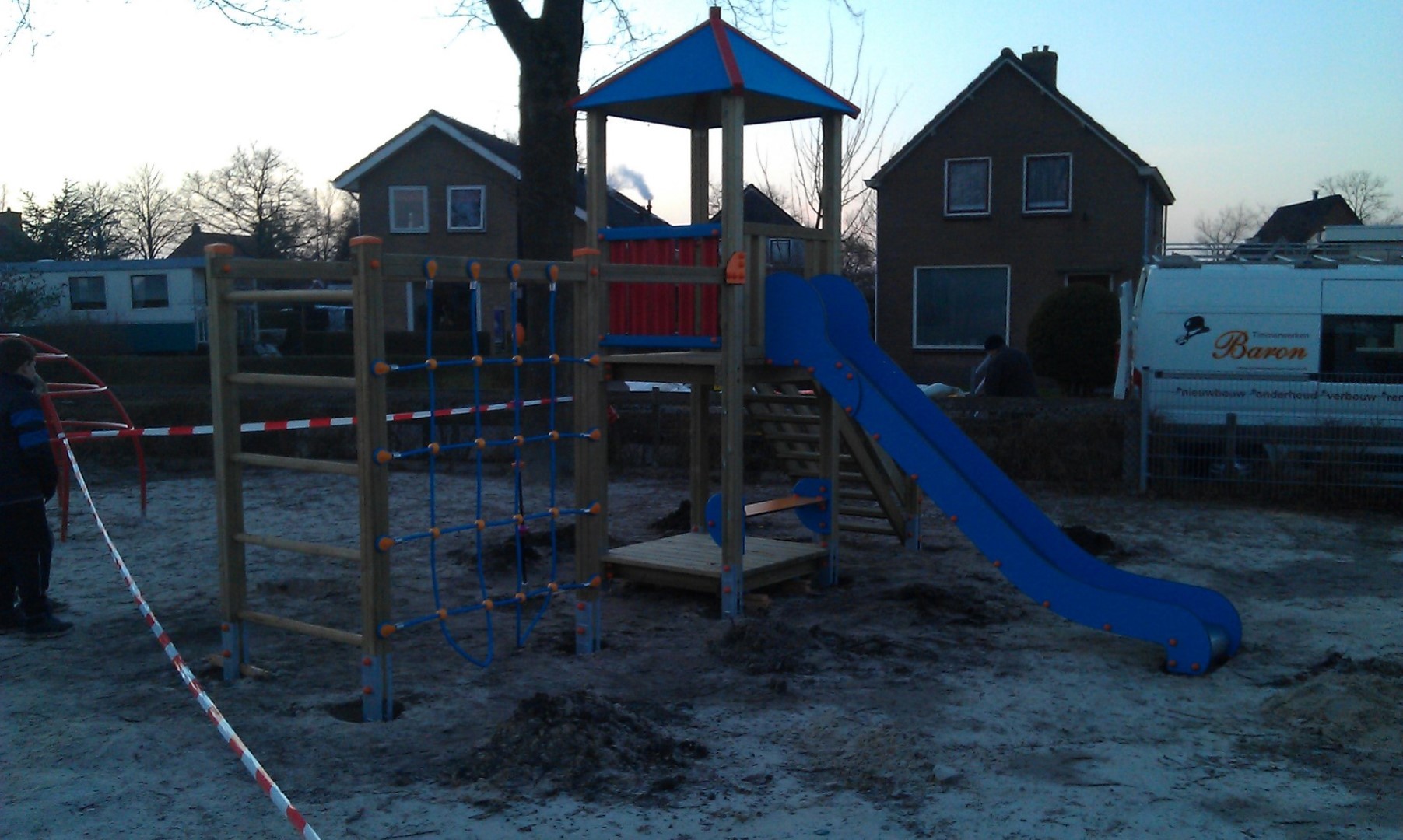 Een Holzhof speeltoren Max geplaatst bij CBS Votum Nostrum in Wijnjewoude. Ook in de winterperiode gaat de plaatsing, mits er niet teveel vorst in de grond zit, door. Wij plaatsen ook speeltoestellen van andere leveranciers/fabrikanten in geheel Nederland