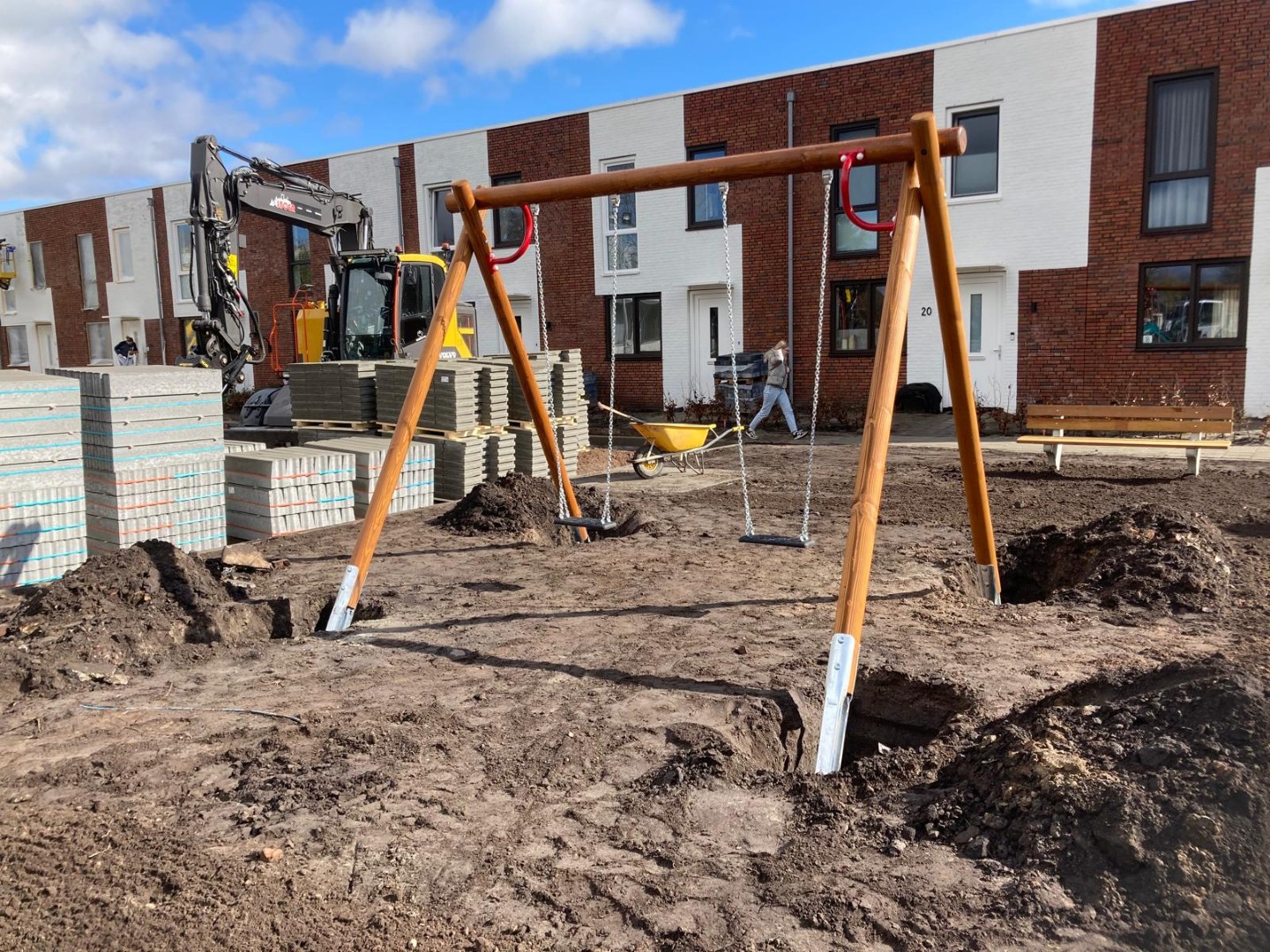 in deze nieuwbouwwijk in Wildervank diende de opdrachtgever een paar speelvoorzieningen en een zitbank te creeëren met een beperkt budget binnen een kort tijsbestek. Na het maken van een offerte kregen we al vlot de opdracht om te leveren en te plaatsen.