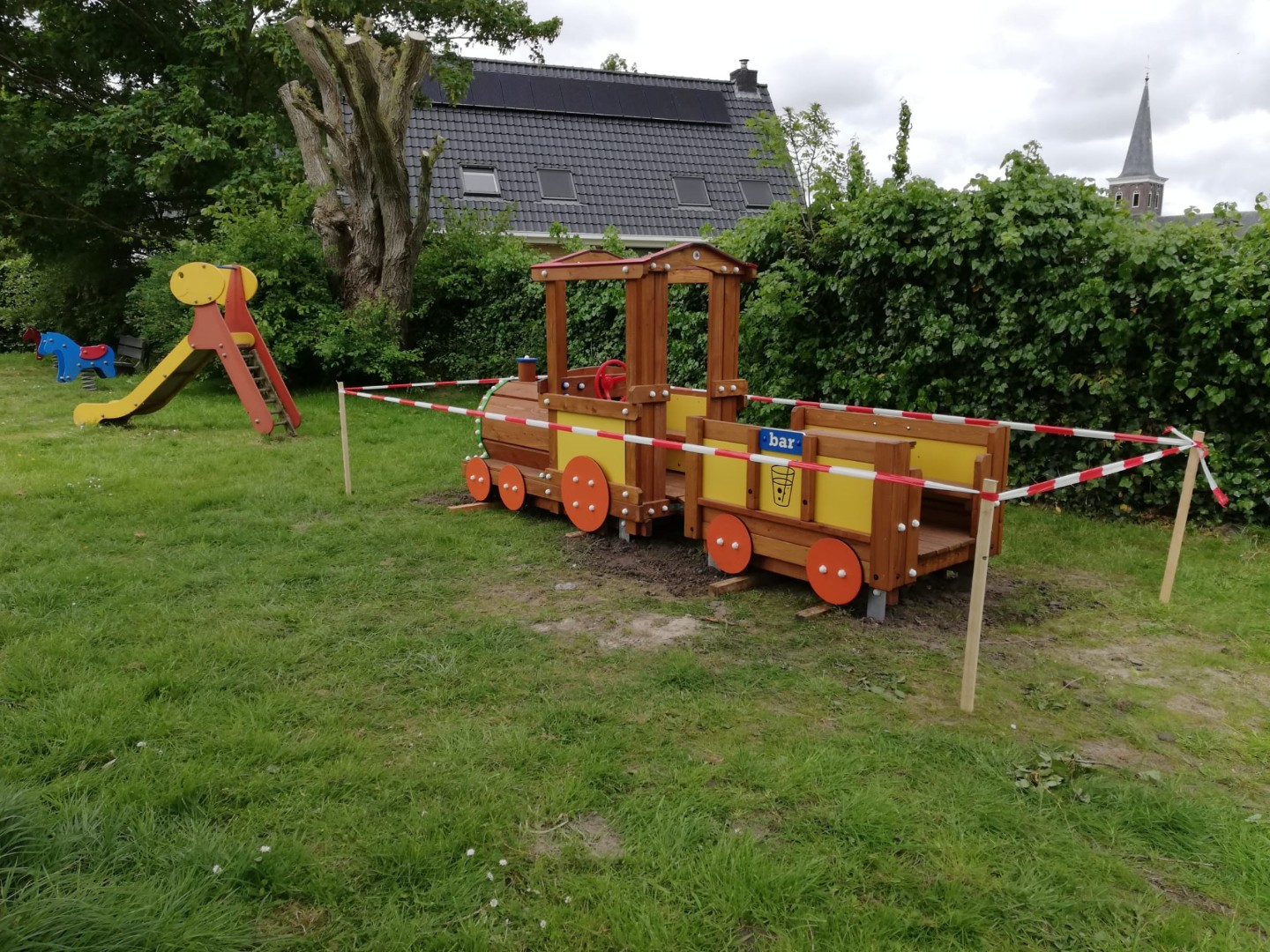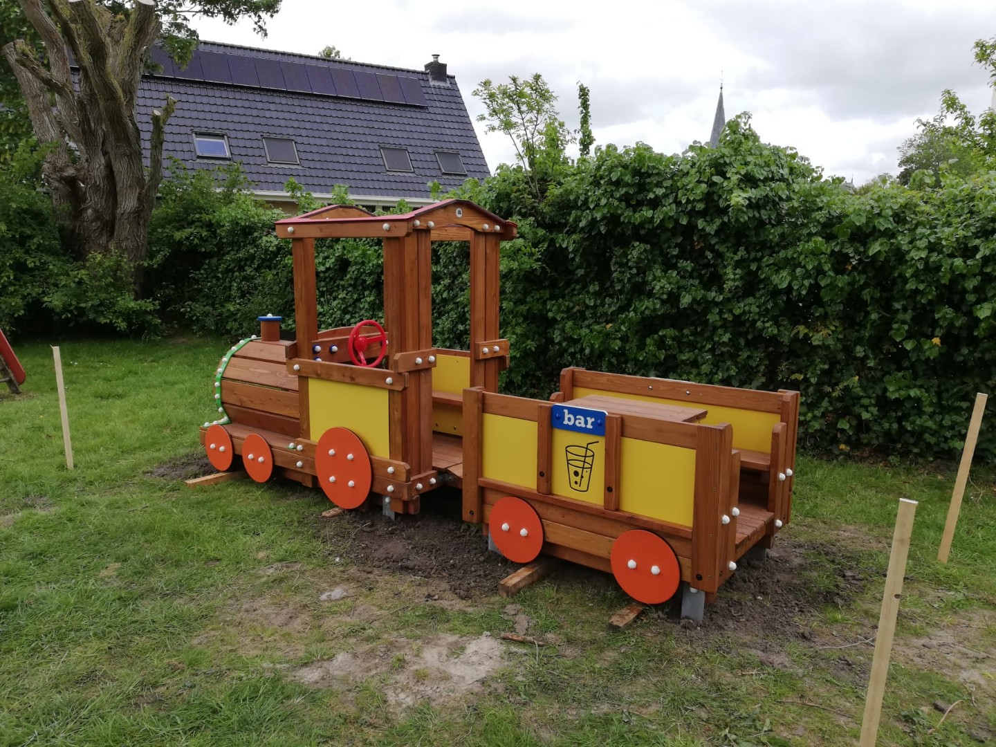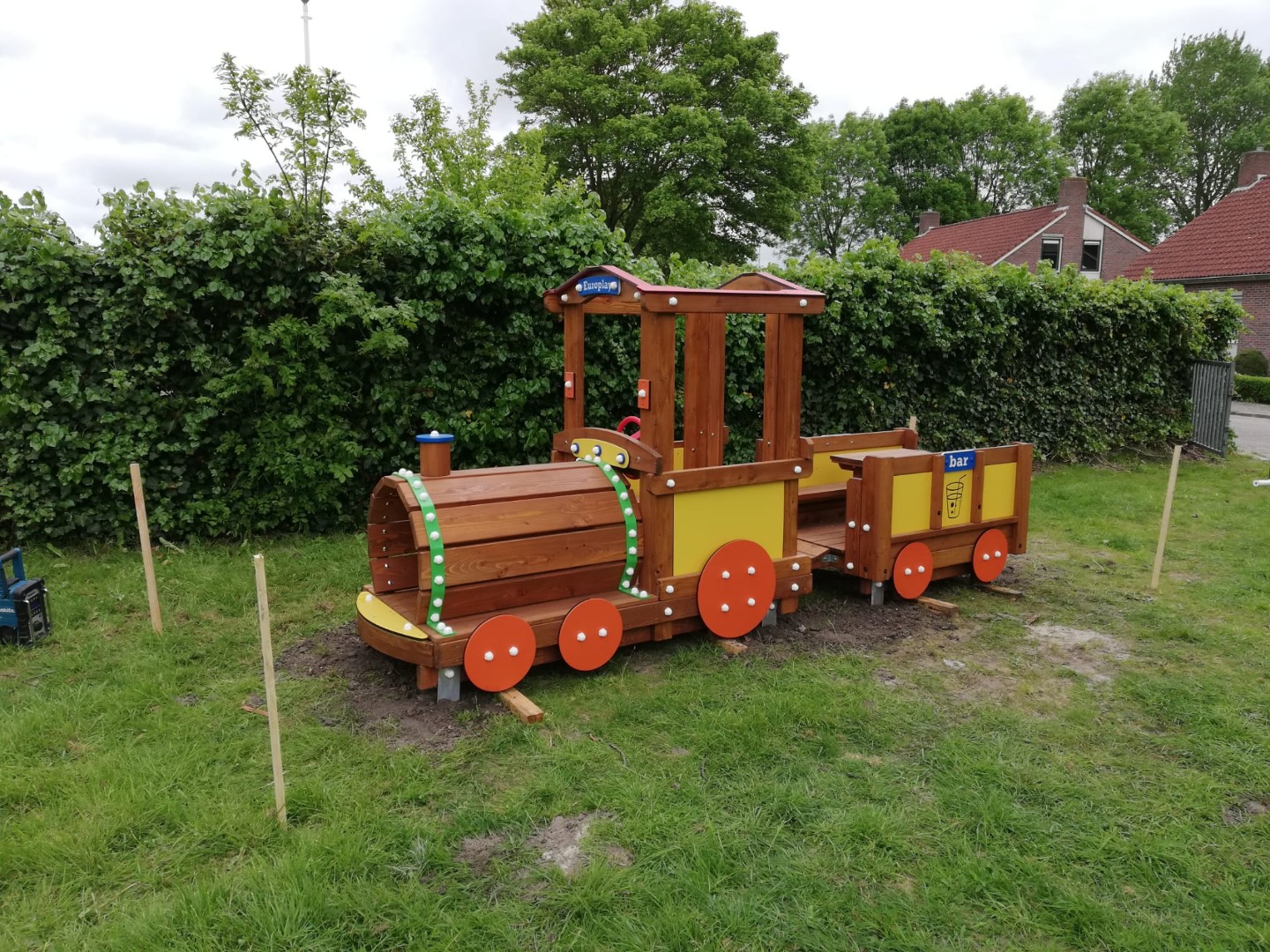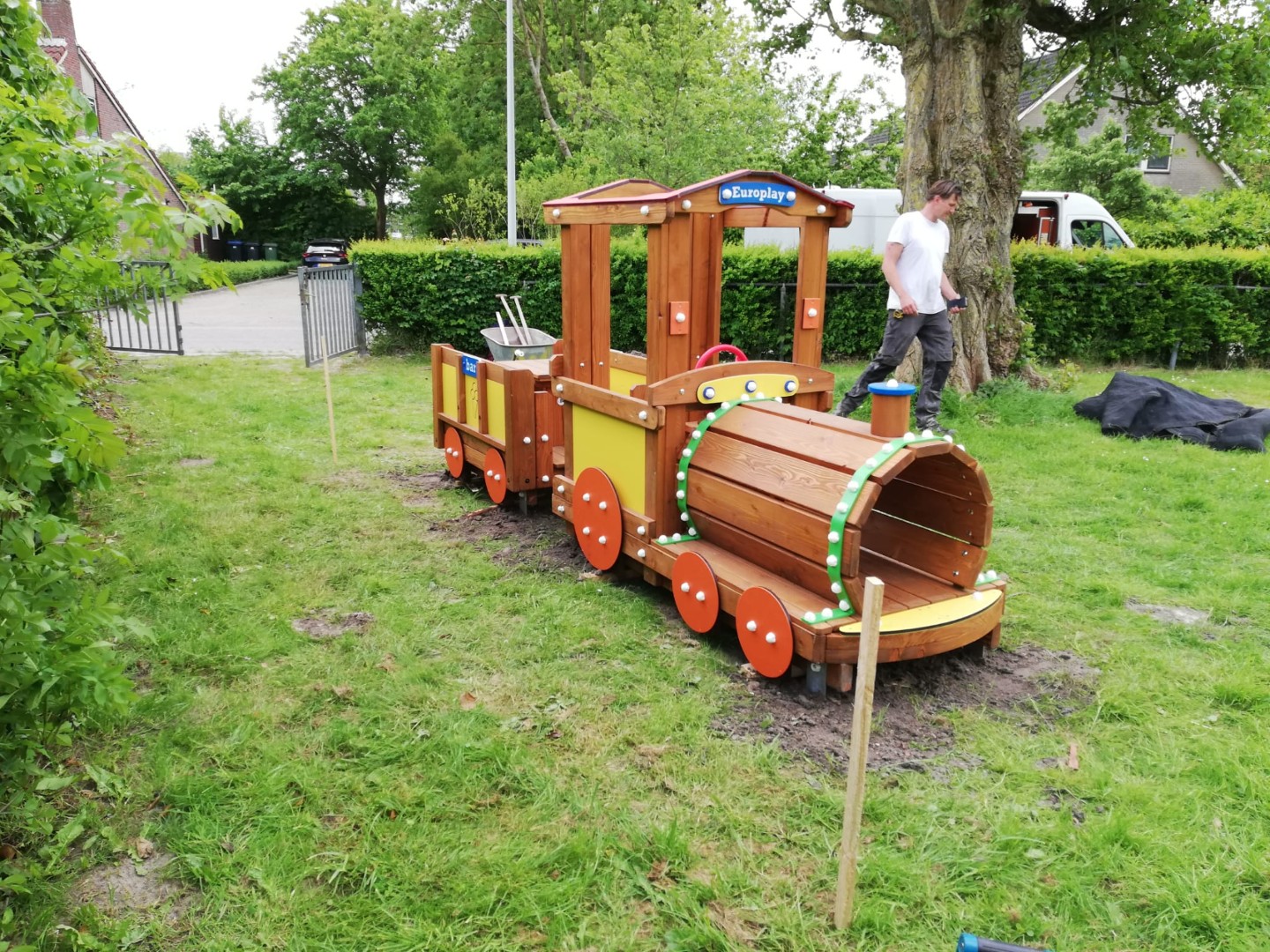 in opdracht van de gemeente hebben wij in de speeltuin In Wommels een nieuwe locomotief en eetwagon geplaatst als vervanging van de vorige trein die aan het einde van de levensduur was. De kleine kinderen kunnen weer volop hun fantasie de vrije loop laten als ze hier mee gaan spelen.